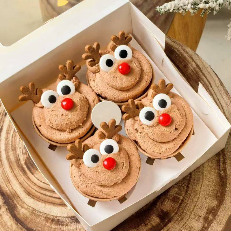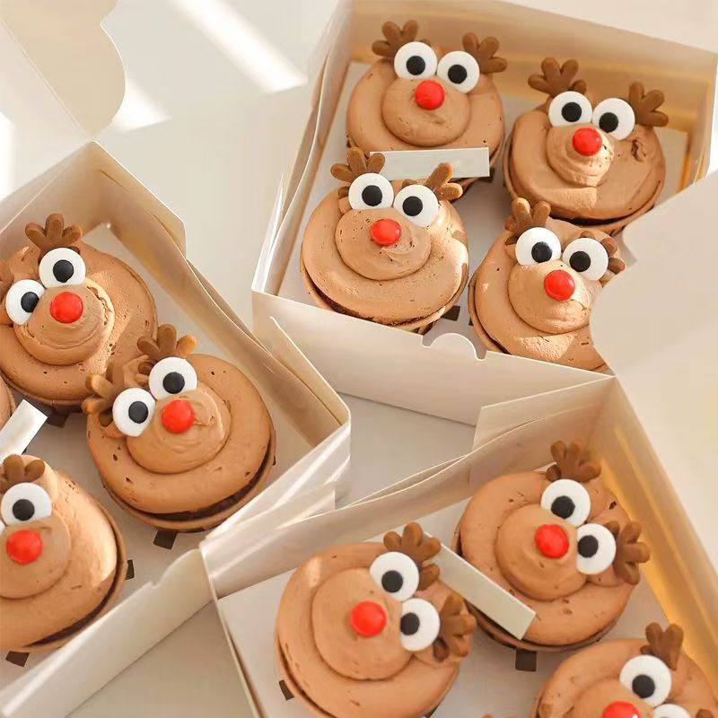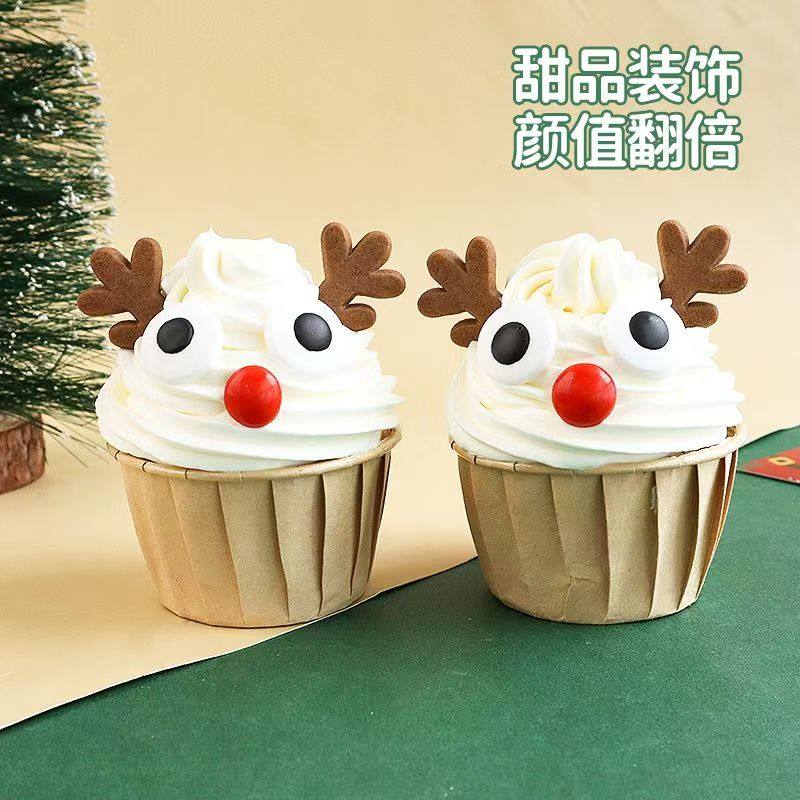 圣诞节蛋糕装 饰鹿角饼干红鼻子眼睛糖麋鹿造型纸杯甜品烘焙摆件