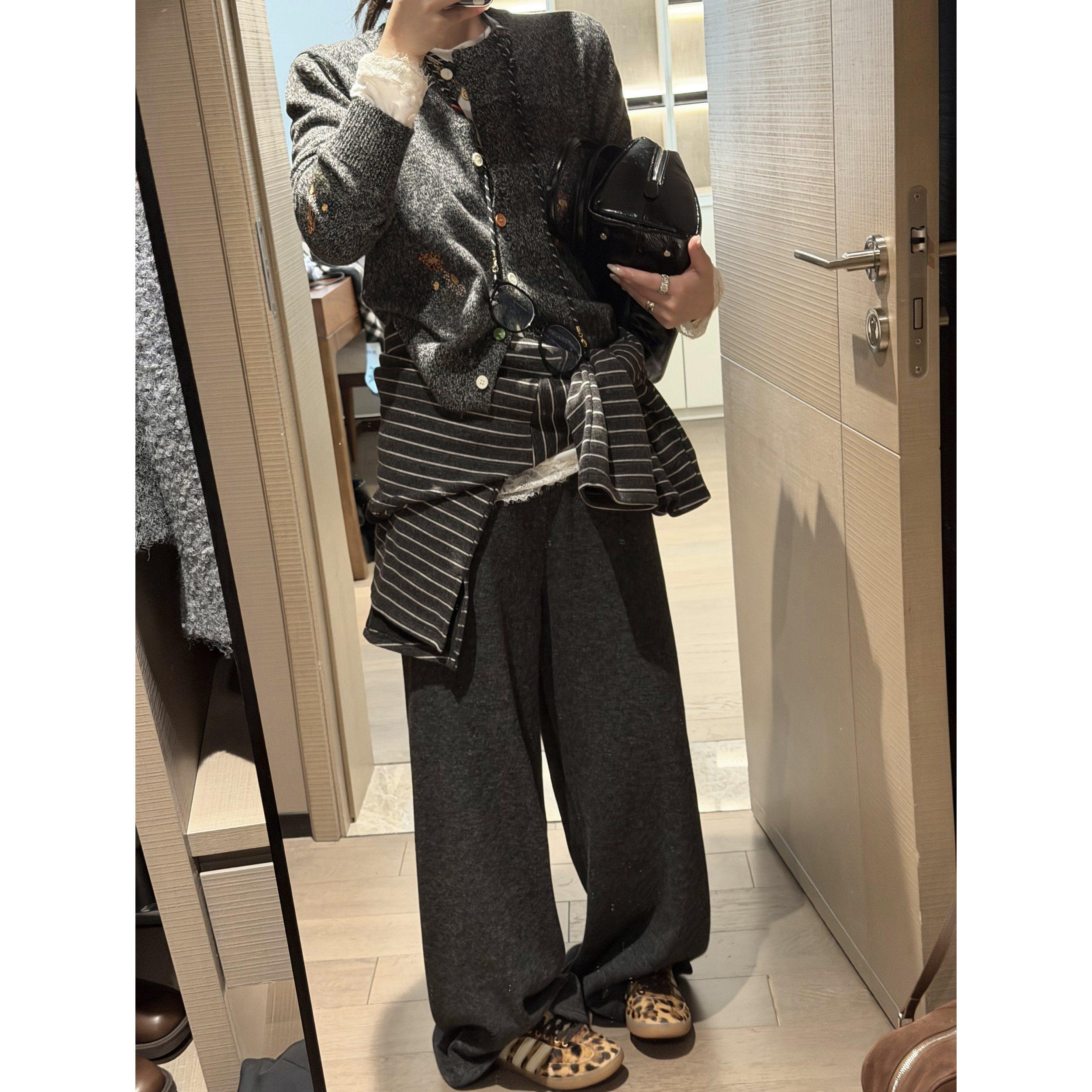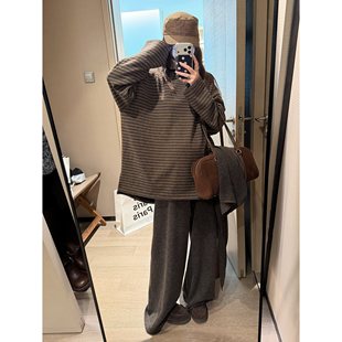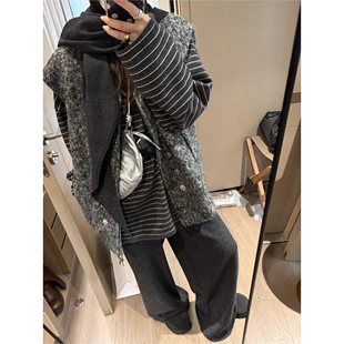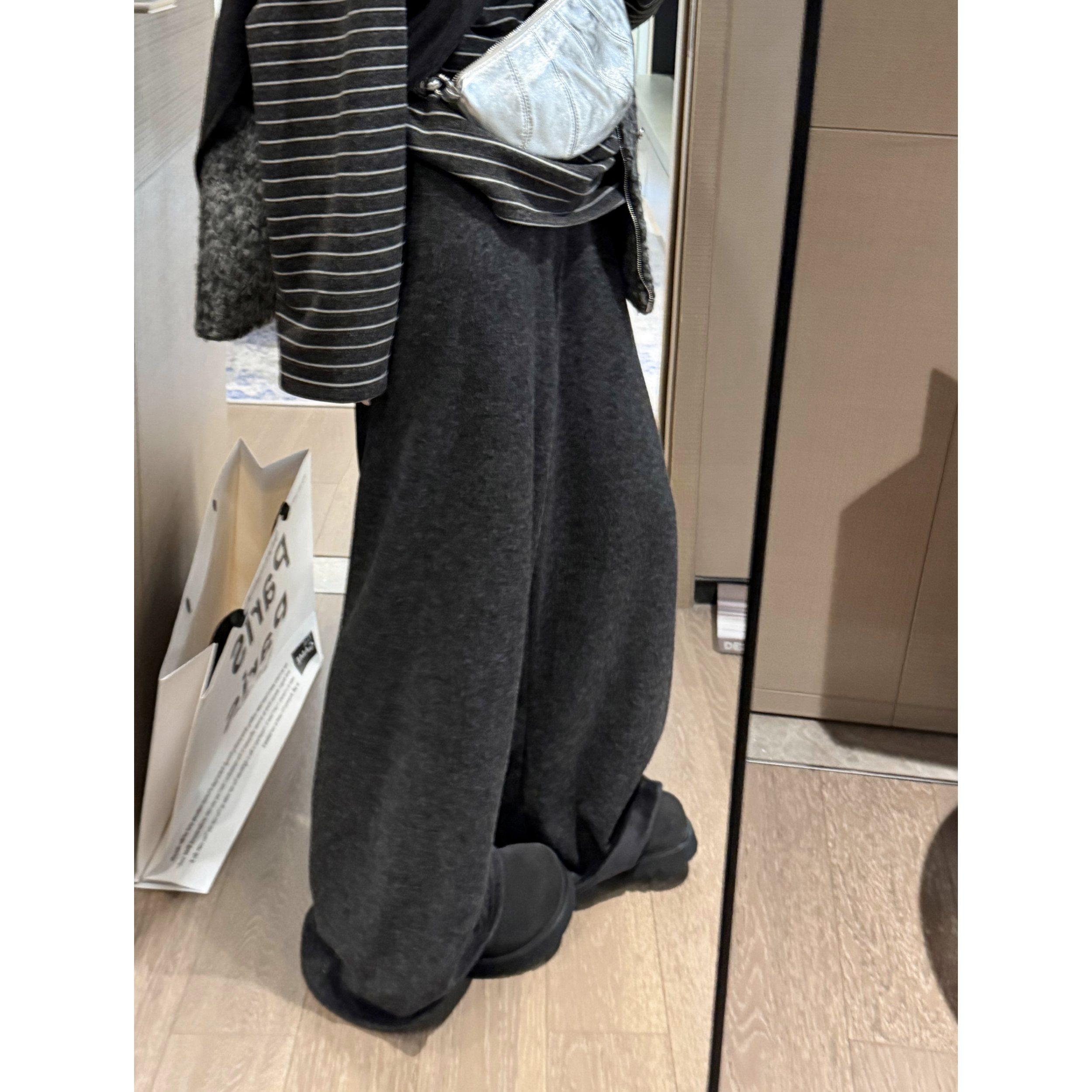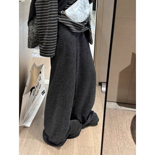 宽松显瘦休闲裤 羊毛针织阔腿裤 高腰抽绳直筒裤 加长拖地裤 女秋冬季
