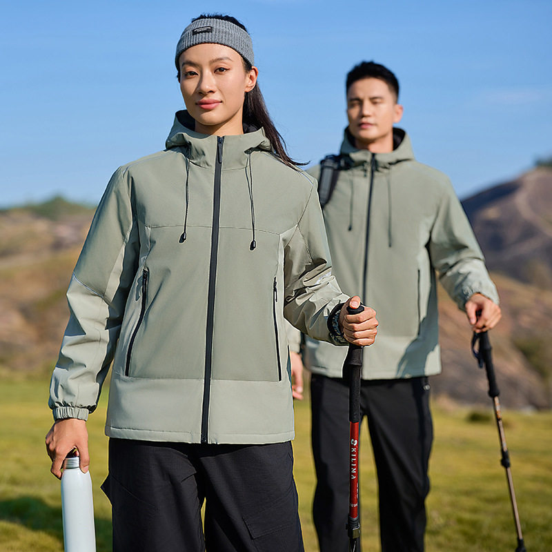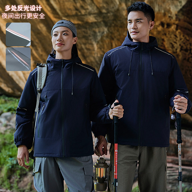新款 一体加厚冲锋衣印字logo加工定制工服厂服团体服外卖服 秋冬款