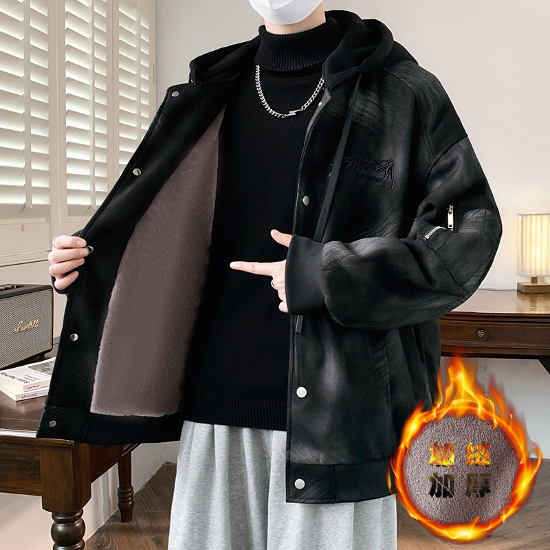 黑色休闲百搭连帽夹克上衣 胖mm双面穿毛绒棉服外套女冬季 大码 女装