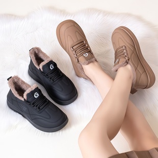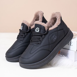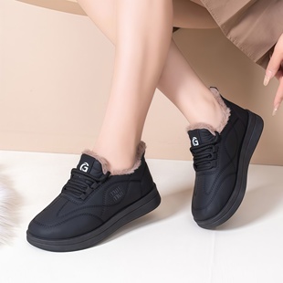 女加绒加厚保暖防滑妈妈鞋 老北京棉鞋 皮面防水雪地靴 新款 2025冬季