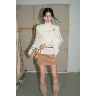 DUO披肩针织两件套春季 OLIVIA 千金风高领毛衣披肩套装 现货