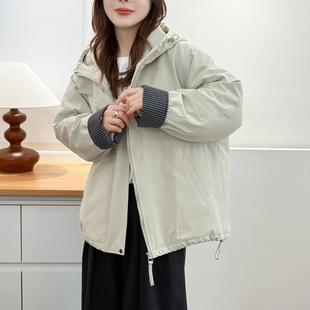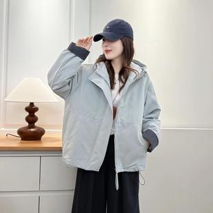 工装 复古夹棉加厚棉服女秋冬新款 派克服外套潮 胖mm美式 300斤大码