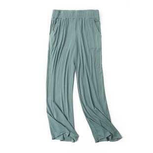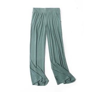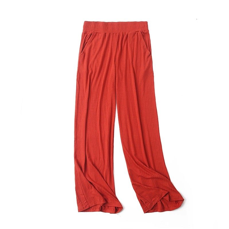 春季 子 新款 宽松女裤 12144 弹力垂感直筒裤 外贸松紧腰针织阔腿裤