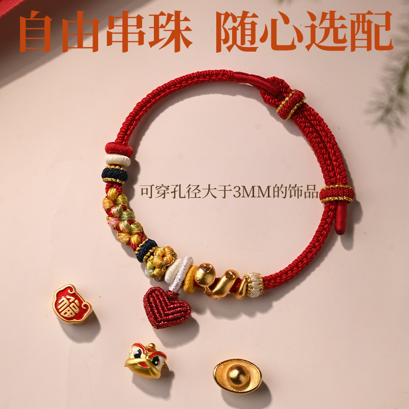 可穿黄金手绳手工编织绳转运珠半成品编绳diy双层叠戴红绳手链女