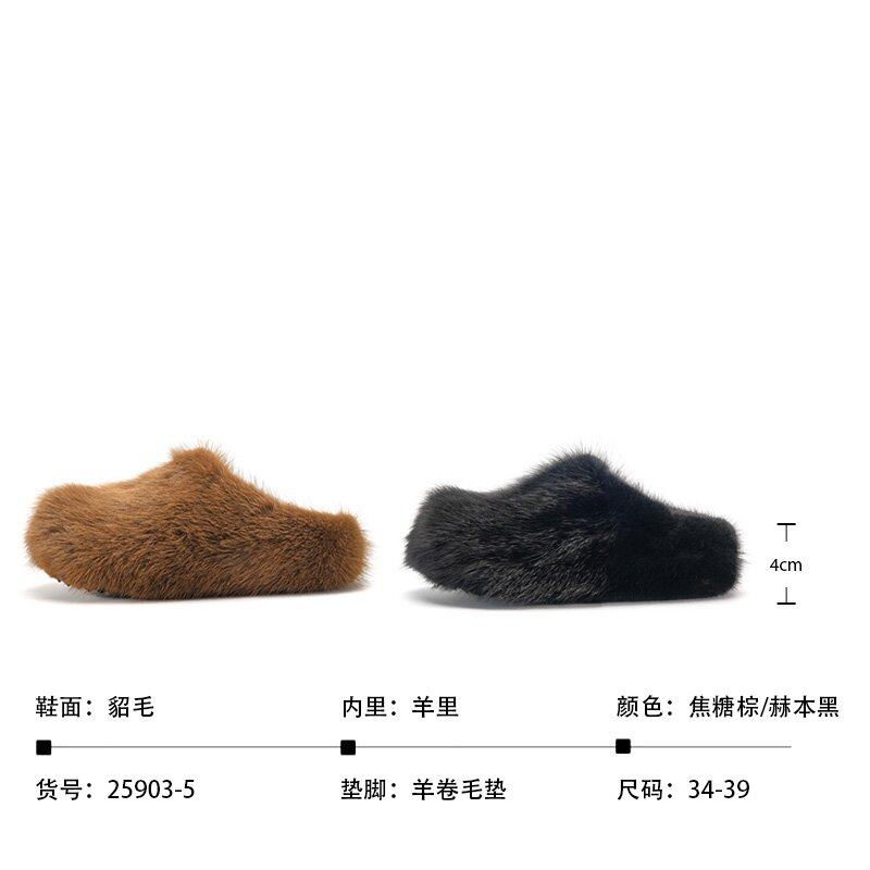 加绒棉拖鞋 厚底包头半拖鞋 爆款 新款 毛毛半拖雪地靴 女外穿2025冬季