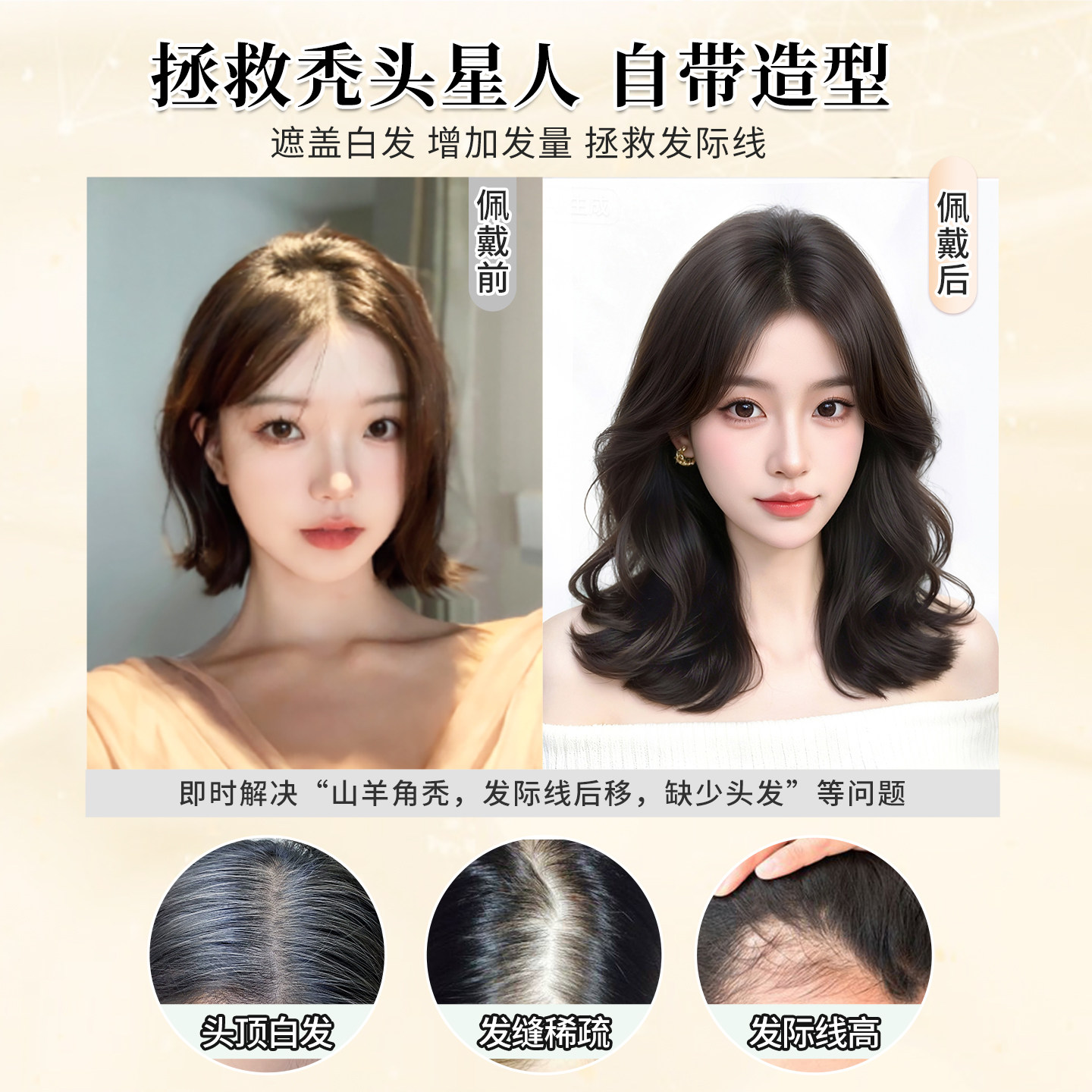 不用戴发网假发女片头顶补发自然无痕颅顶蓬松微卷发一片式 补发片