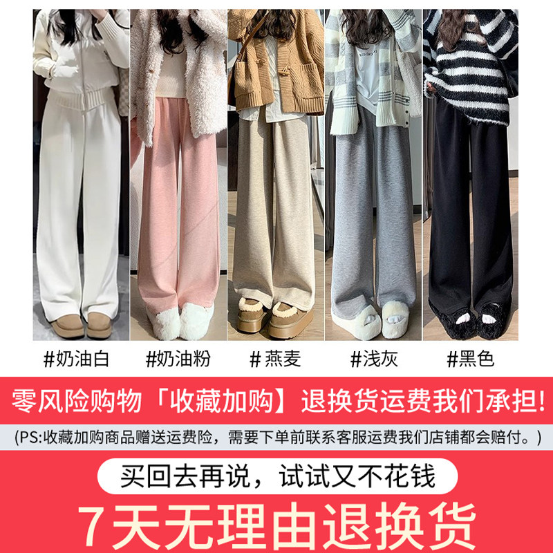高腰垂感宽松直筒加绒小个子羊绒阔腿裤 白色糯米裤 女秋冬2025新款