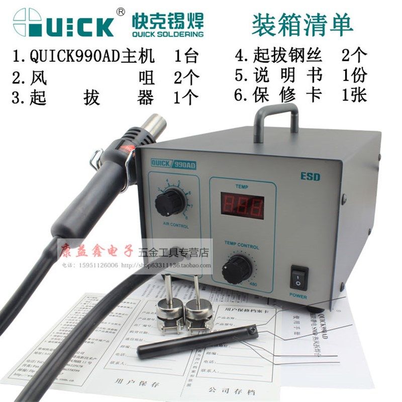 QUICK快克990A热风拆焊台990AD数显热风枪焊台 防静电热风拔焊台