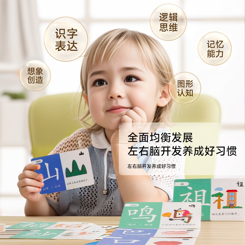 幼儿园识字卡片儿童基础认字宝宝启蒙书看图识字早教神器象形闪卡