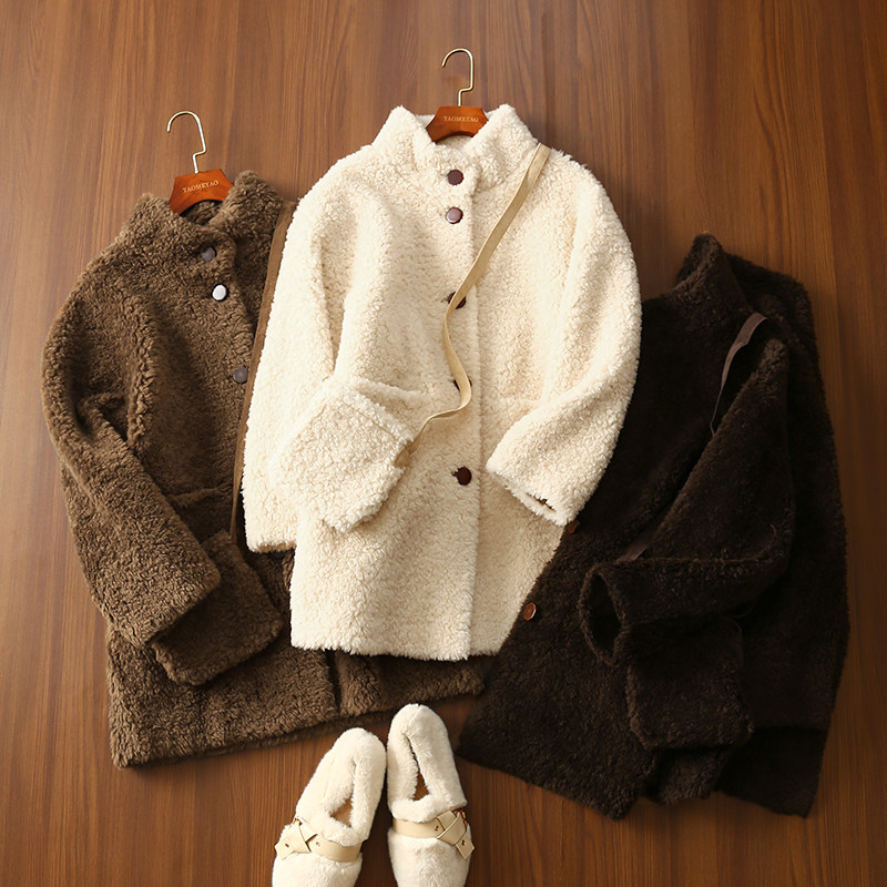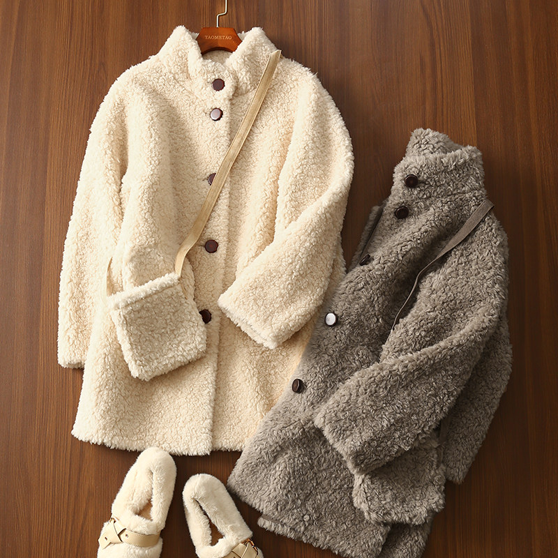 纯羊毛仿皮毛一体立领加厚中长外套女 单品 包包 时髦精 淘么淘