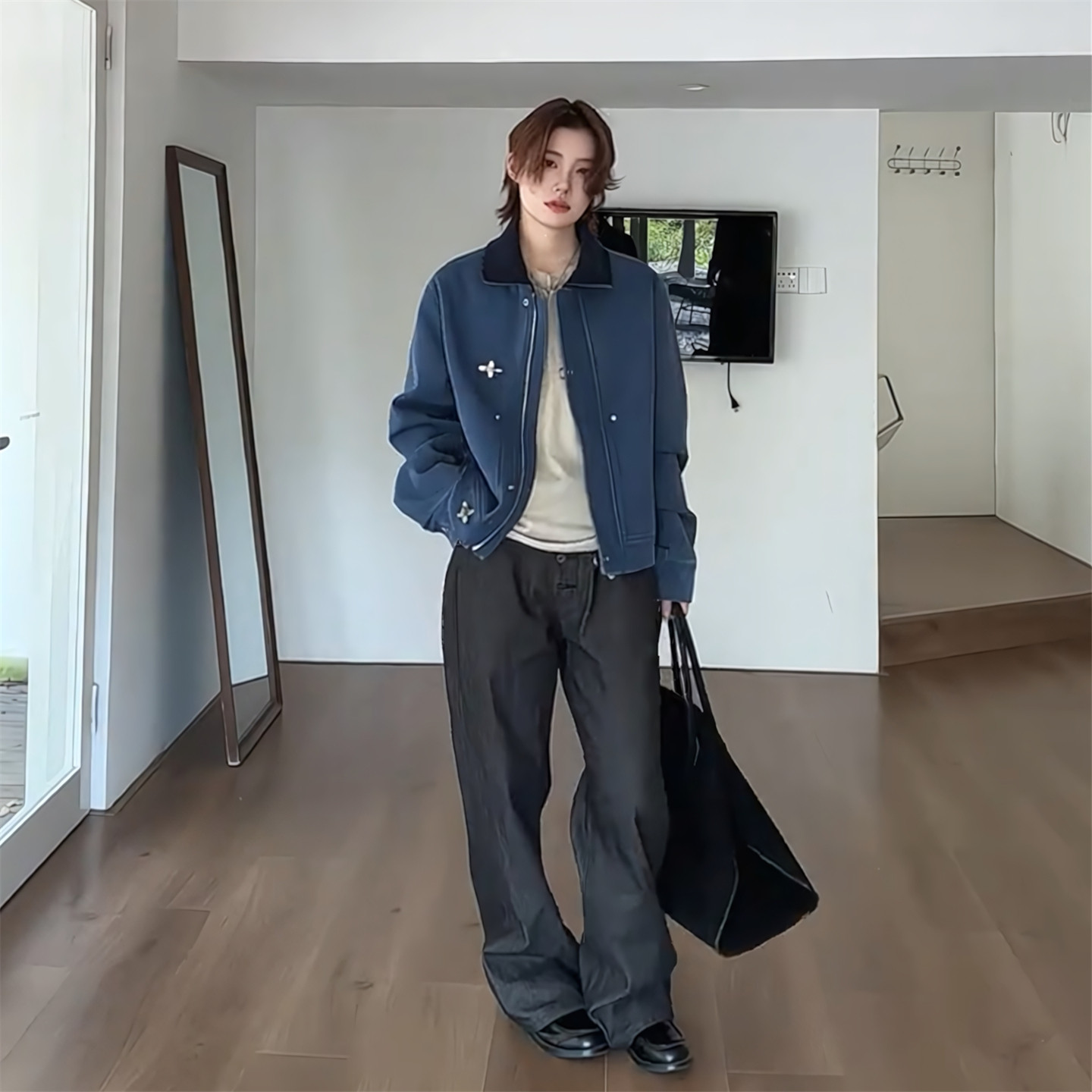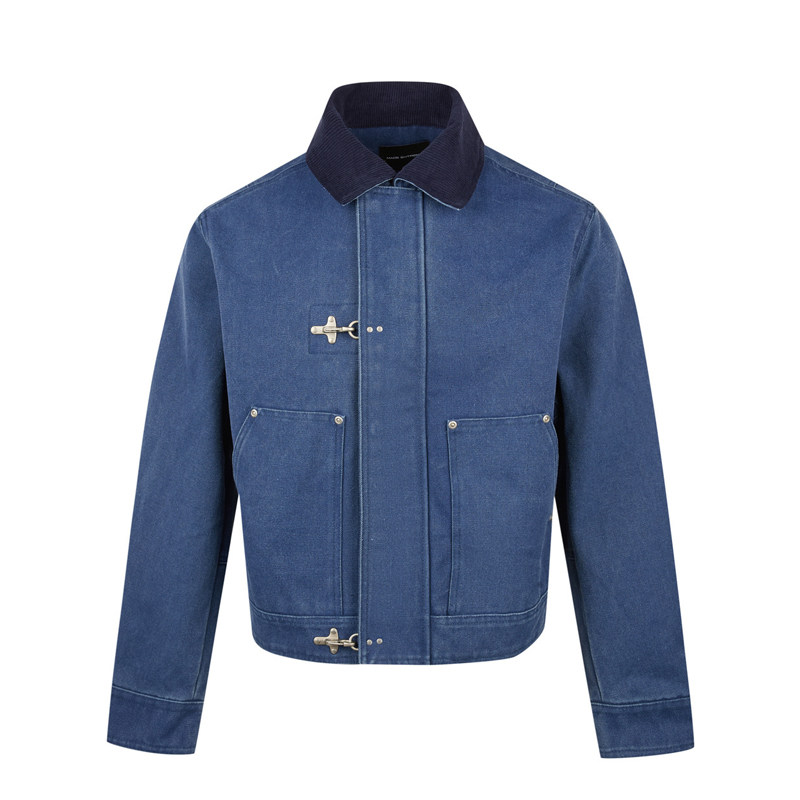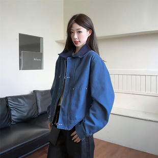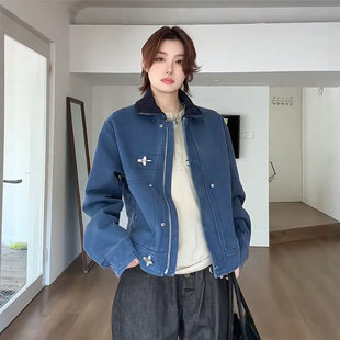 RuleByMe 外套 珠帆布洗褪飞机扣翻领夹克男女复古cleanfi短宽工装
