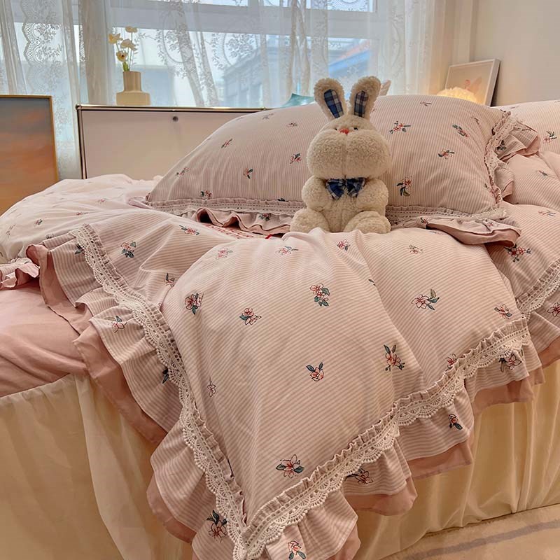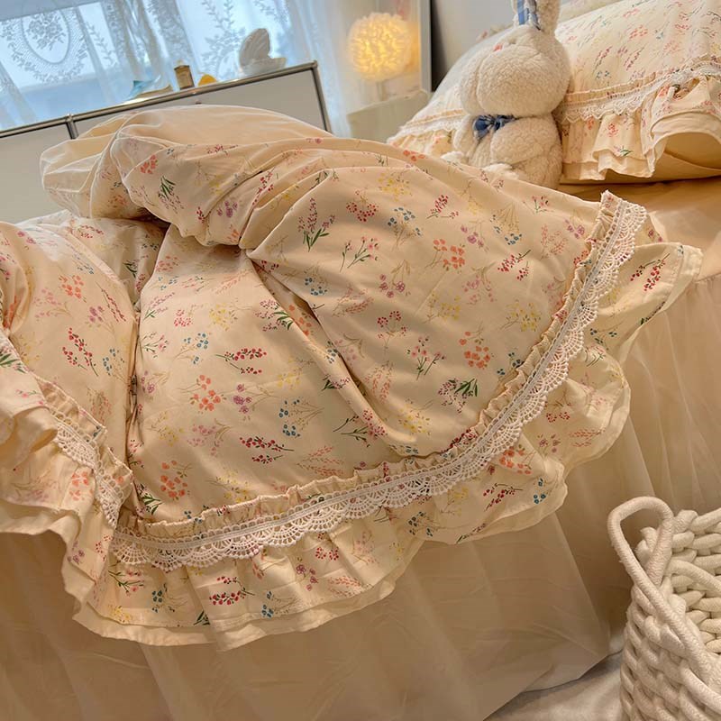 少女心韩式 花边小碎花全棉四件套纯棉床裙公主纯棉被套床上用品