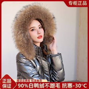 加厚连帽宽松保暖鸭绒外套Z 短款 鸭鸭滑雪羽绒服女士2024冬季 反季