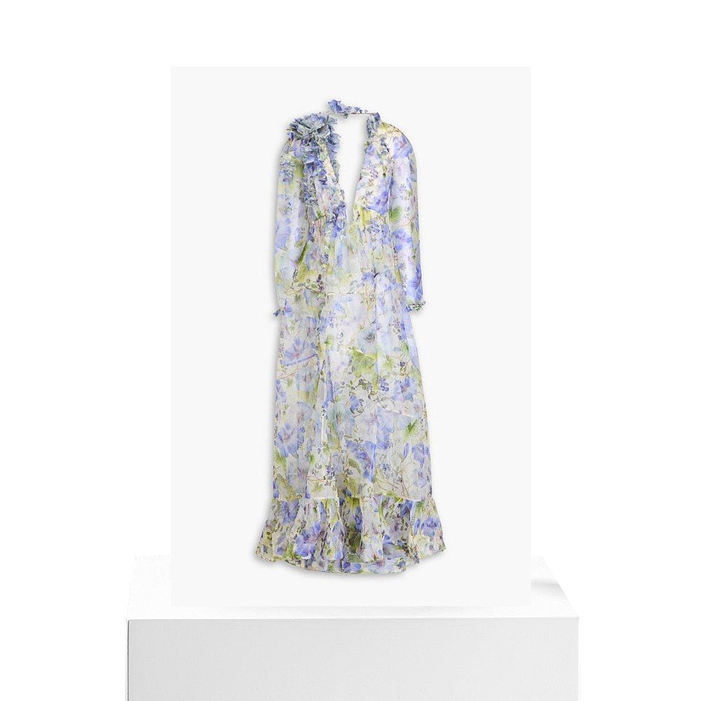 晚装 宴会主持年会礼服2025春秋蝴蝶结飘带波点印花木耳波浪连衣裙