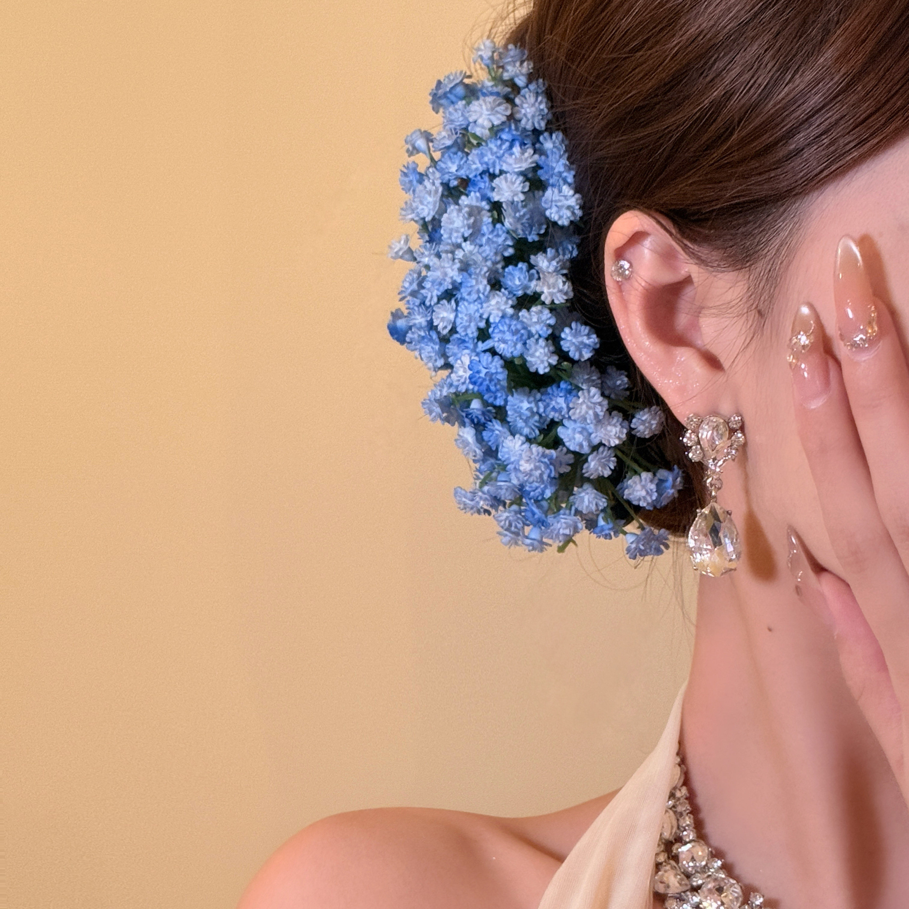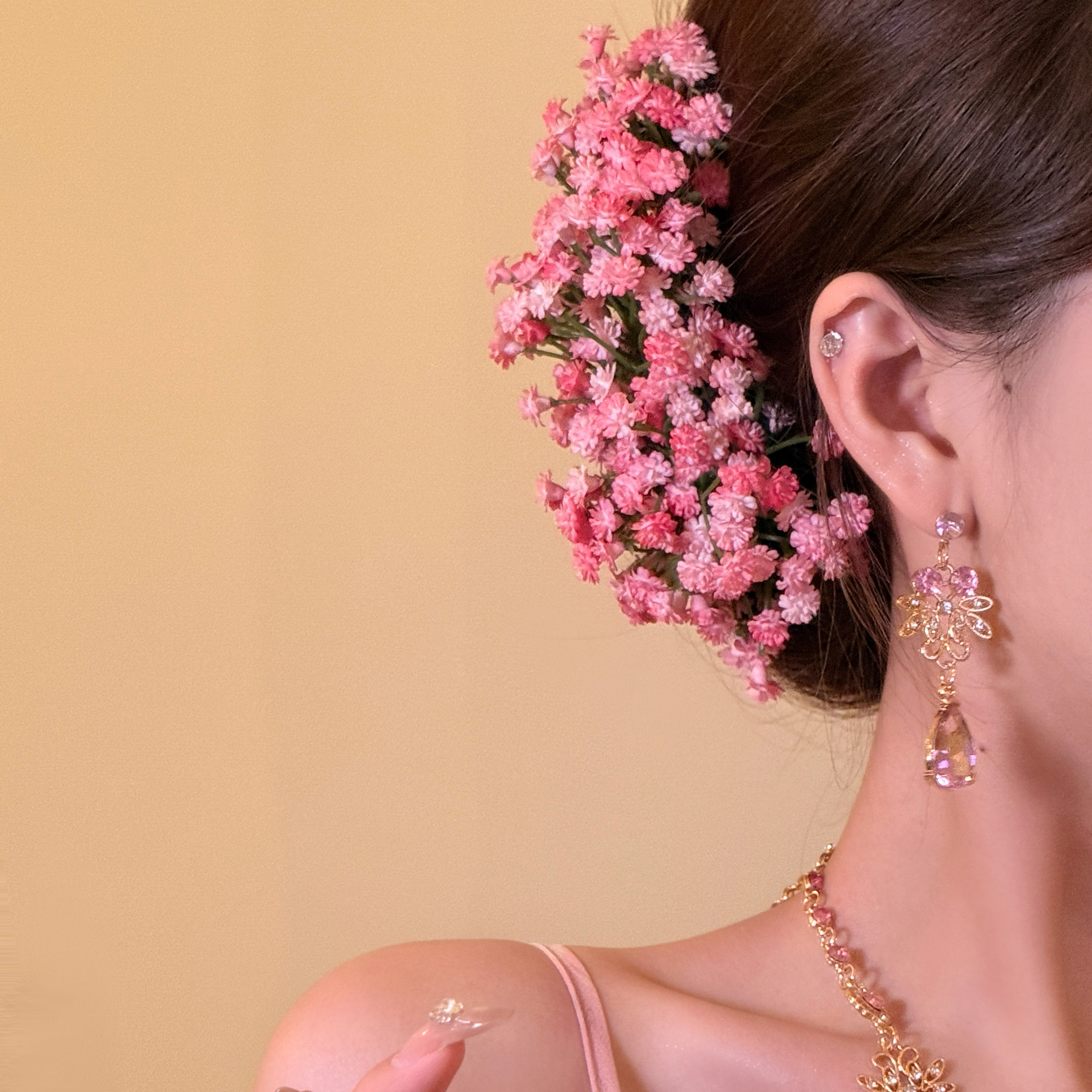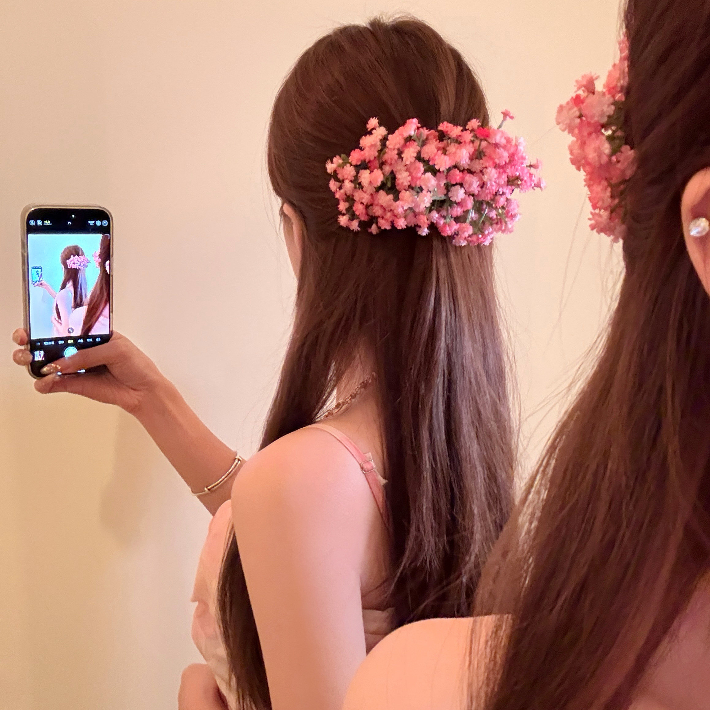 云朵泡泡褶皱碎花丸子头抓夹发饰2025新款 高级感后脑勺头发发夹女
