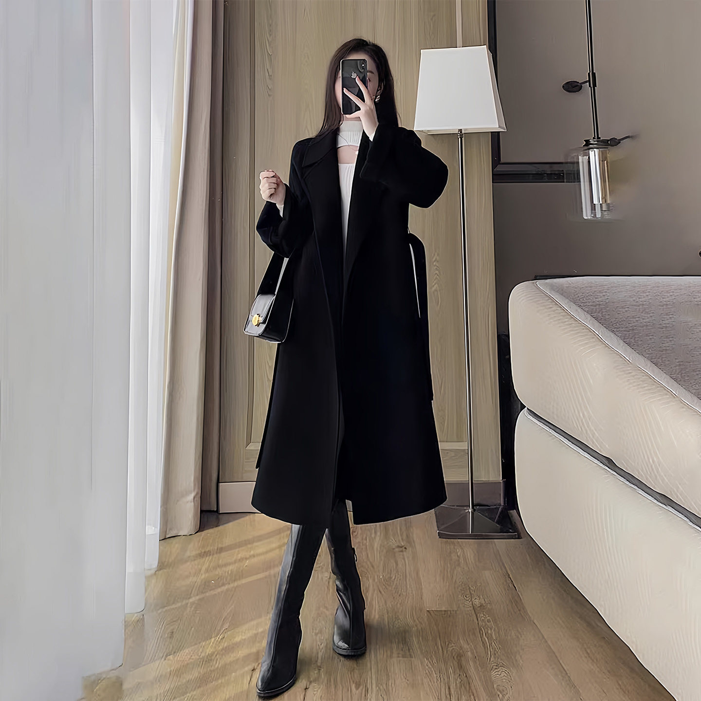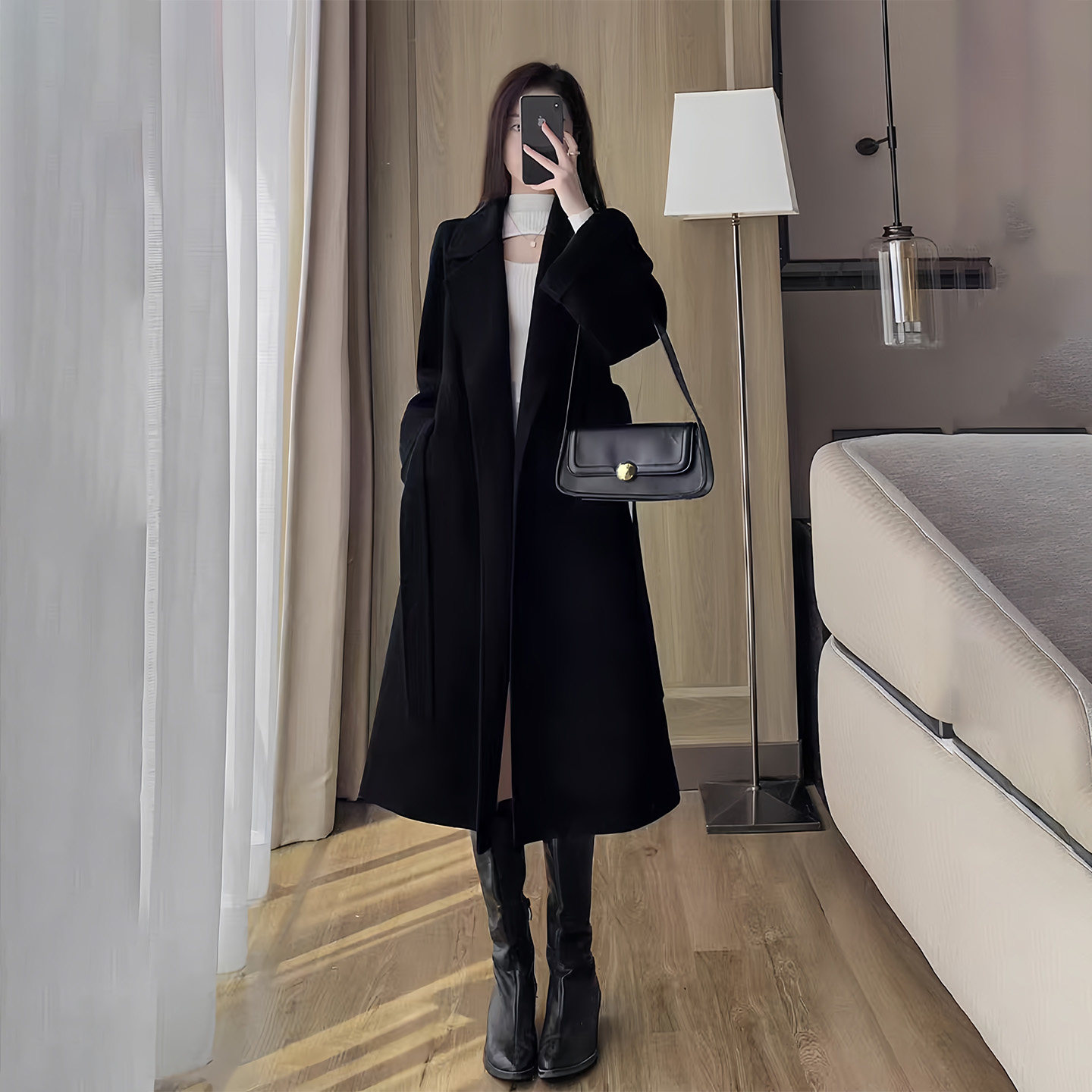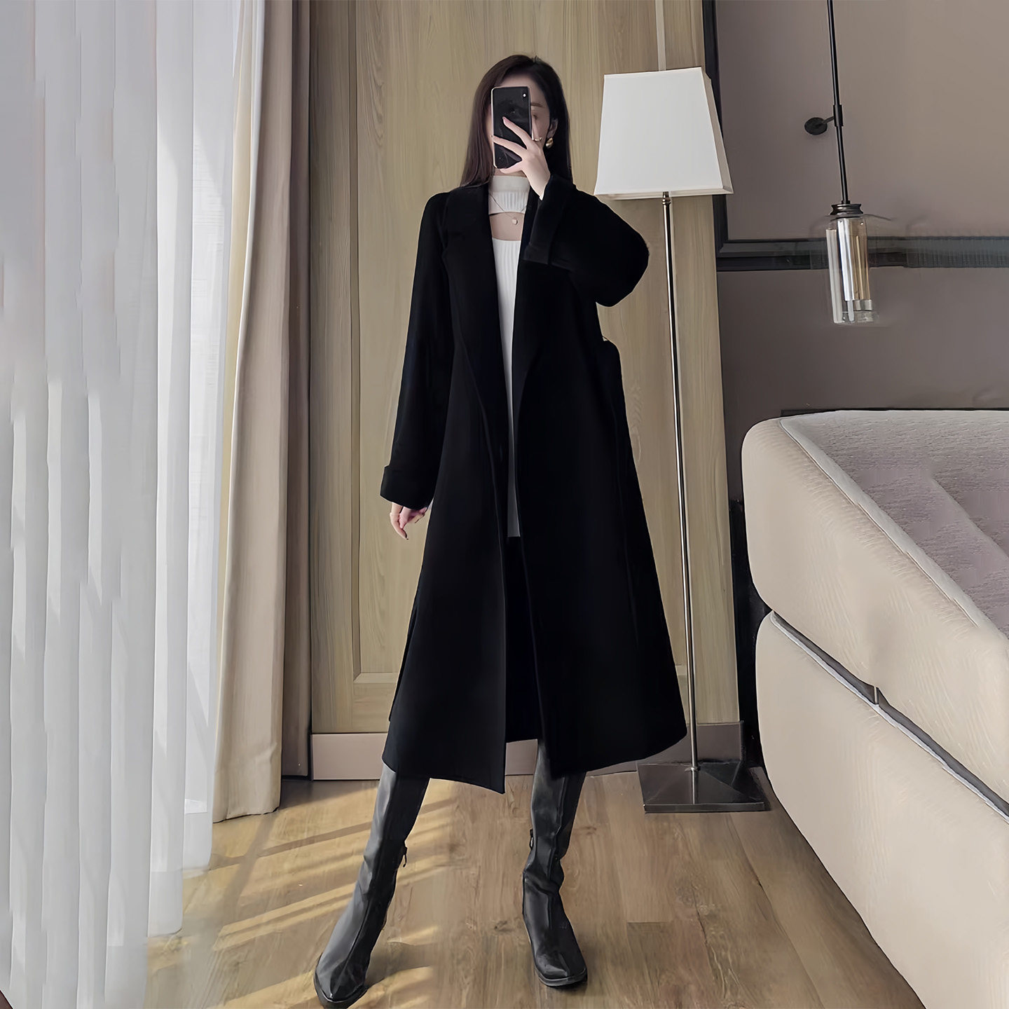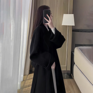 羊毛呢外套 高端中长款 赫本风黑色双面羊绒大衣女2025秋冬新款 韩版