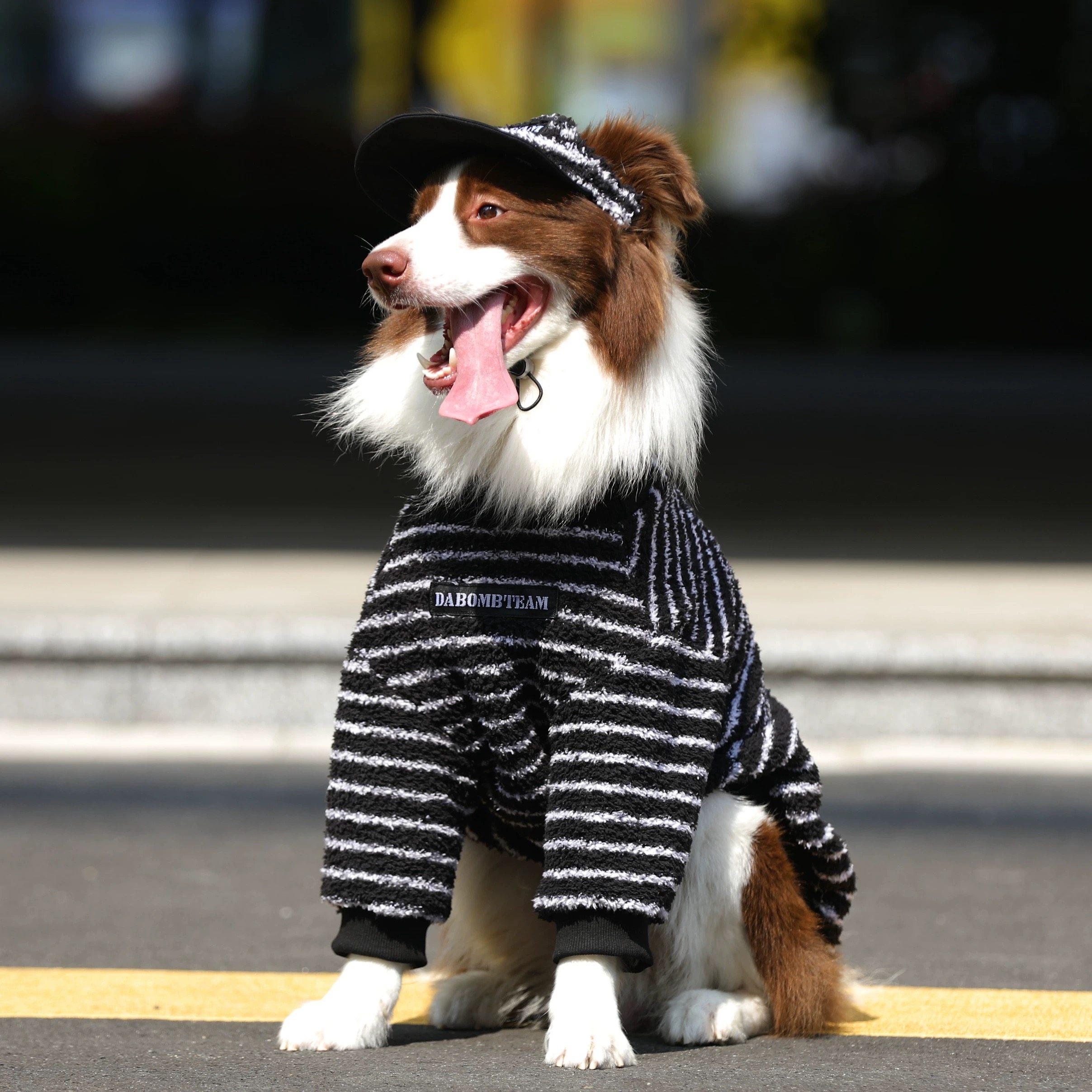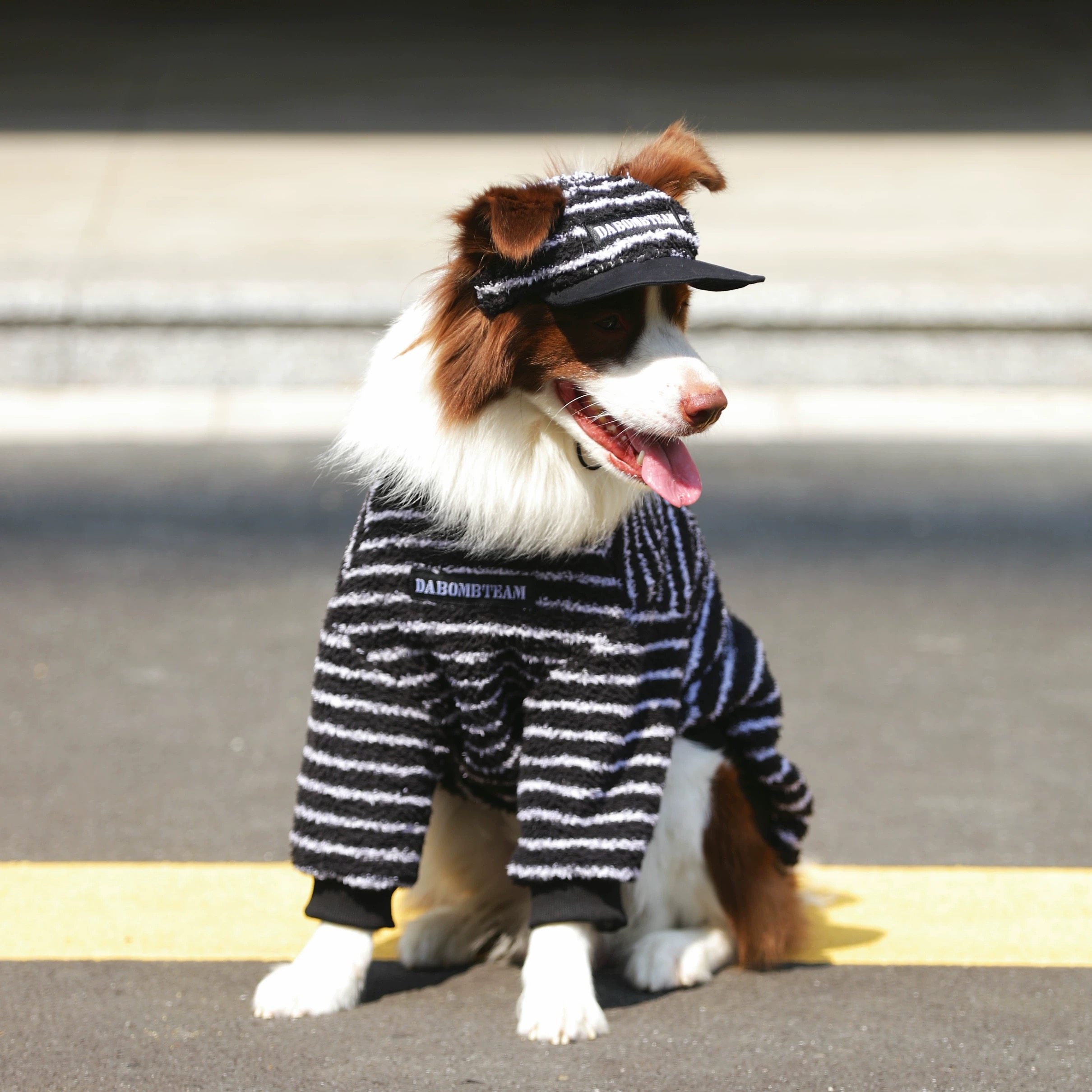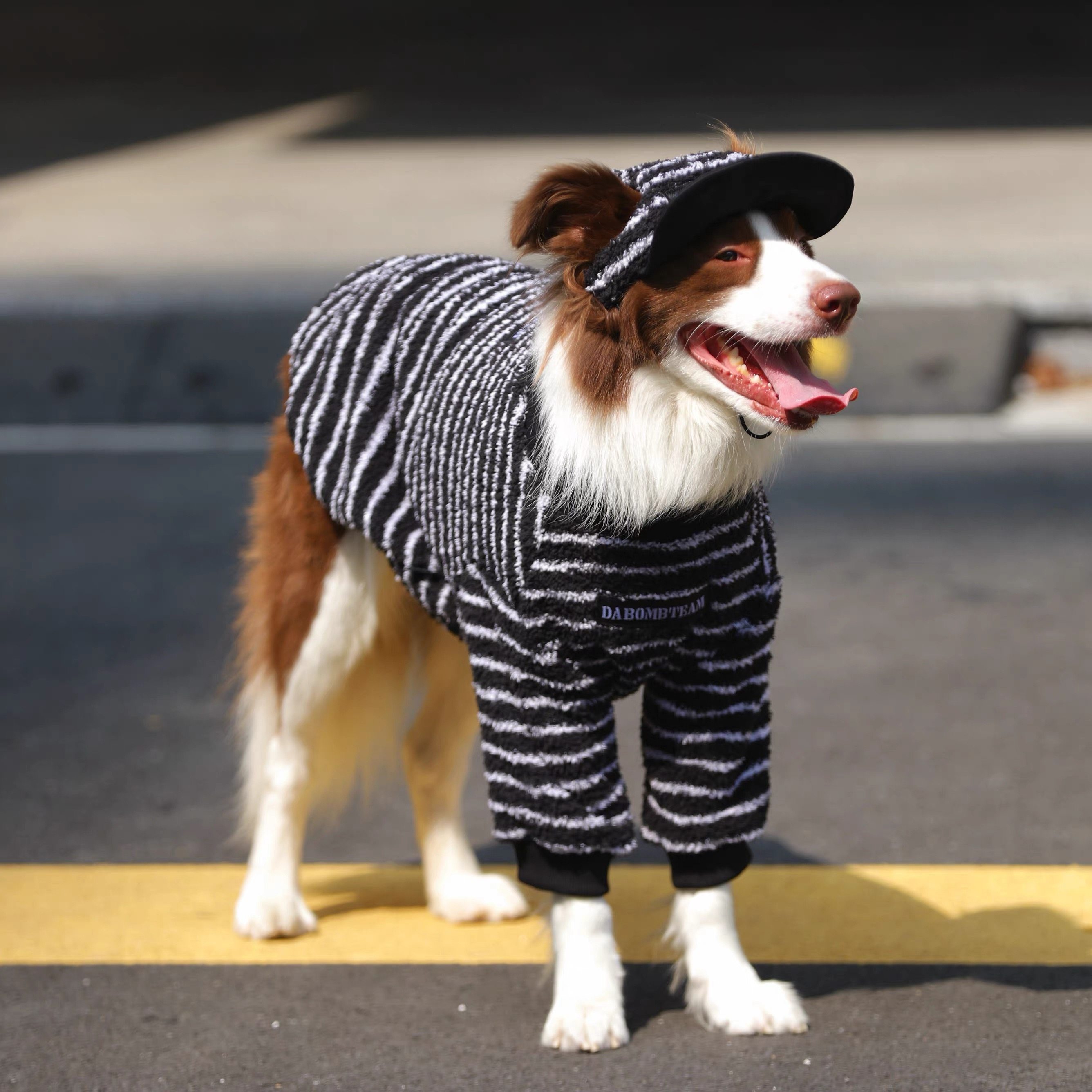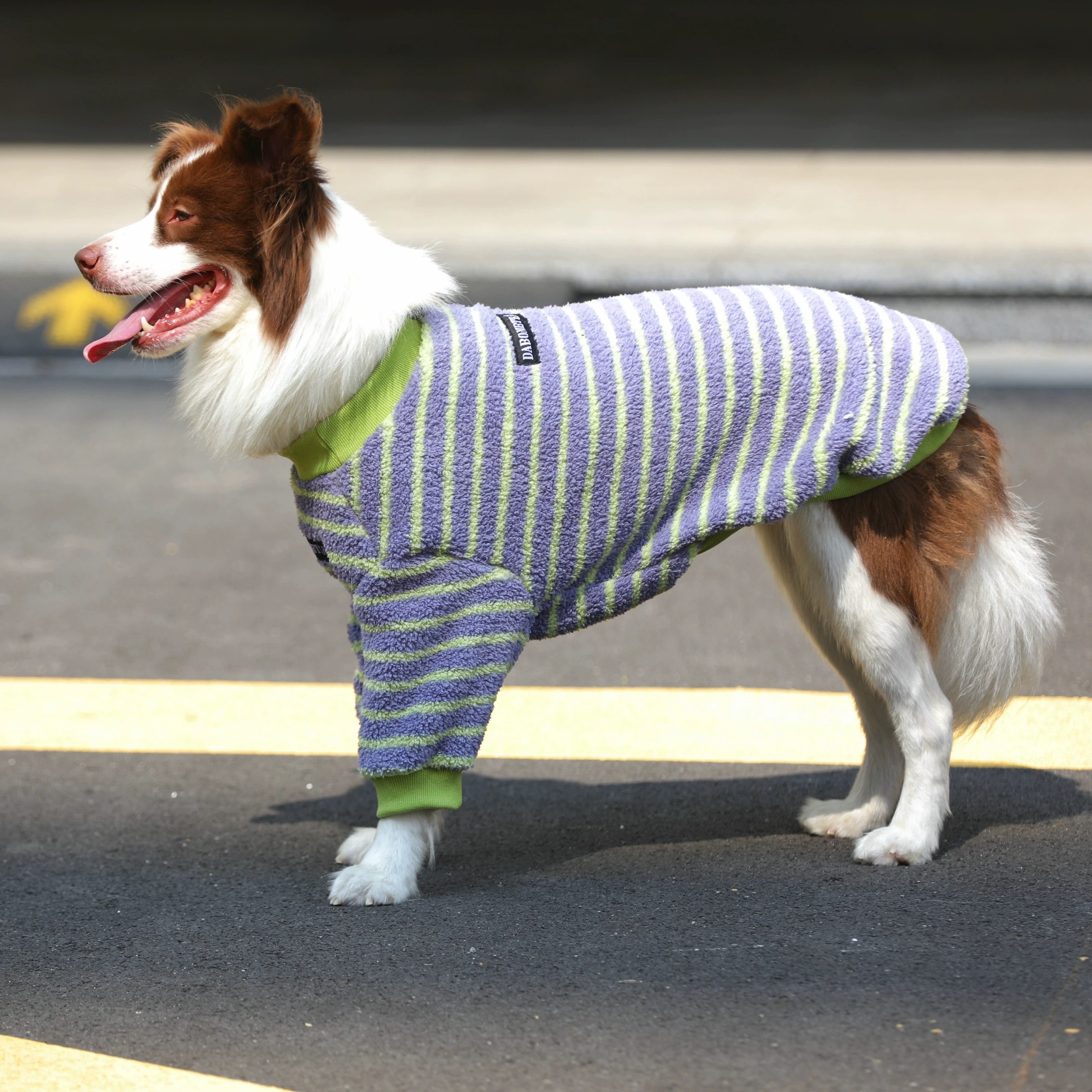 潮牌条纹北极绒中大型狗狗衣服秋冬新款 金毛边牧拉布拉多加绒卫衣