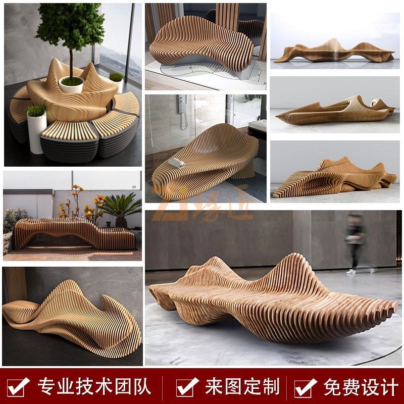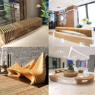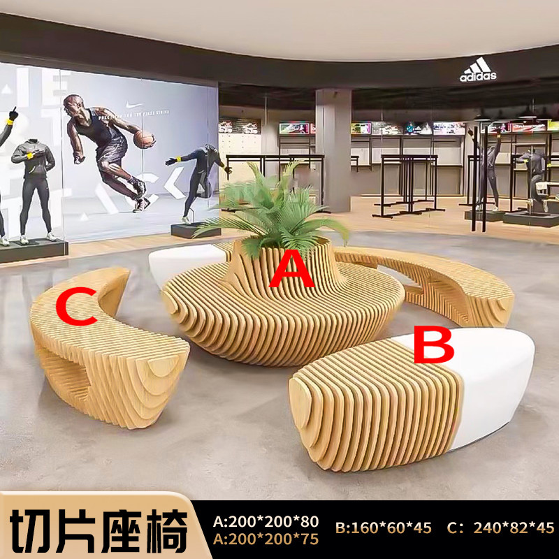 户外实木防腐木切片座椅定制商场大厅休闲椅异形艺术切片座椅摆件