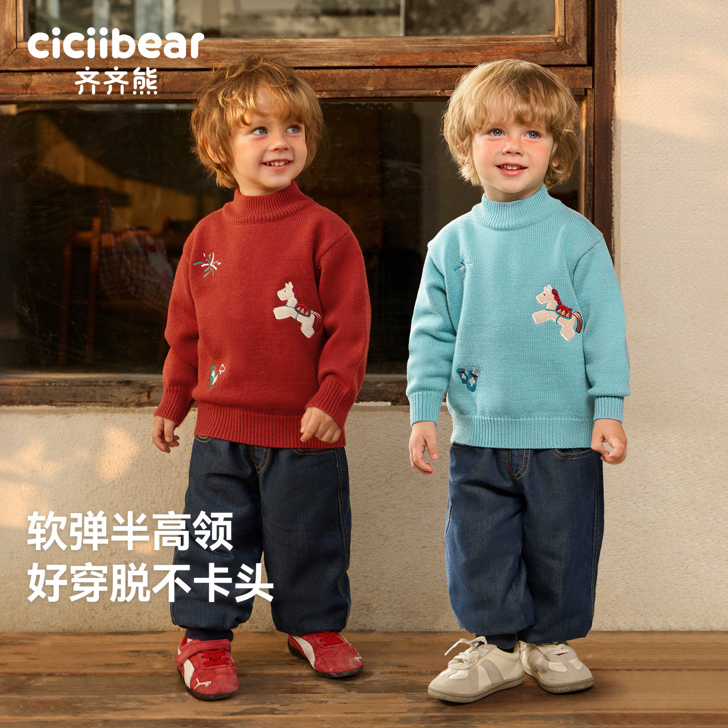 保暖针织衫 半高领毛衣男秋冬中领加绒加厚打底衫 毛线衣 可机洗