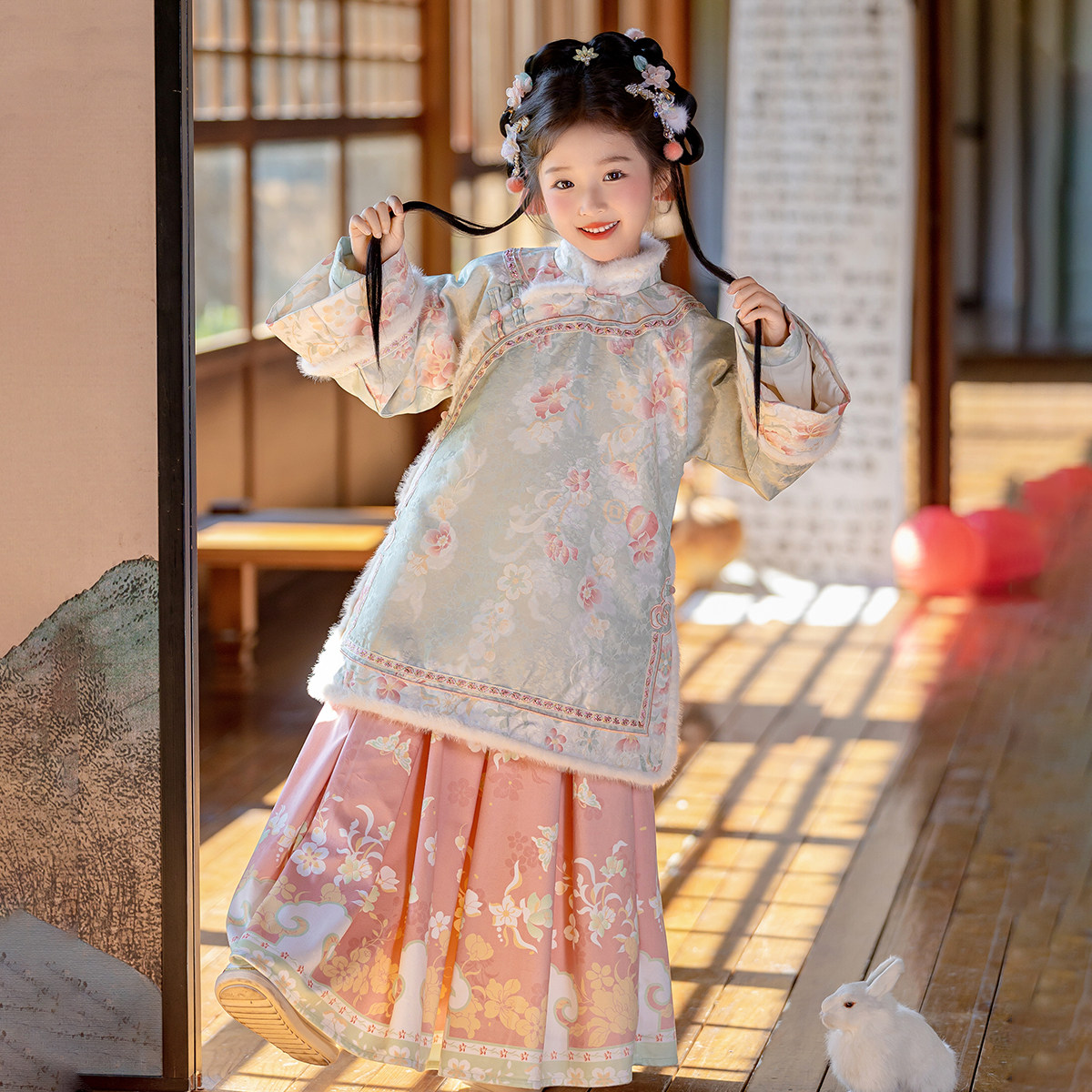 直领短袄日常马面裙套装 明制汉服加绒对穿交冬款 花束玫瑰 茗月萱
