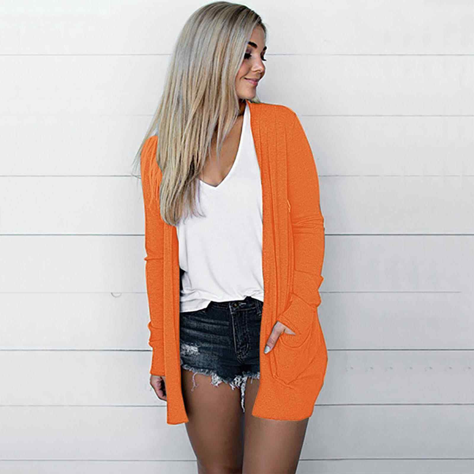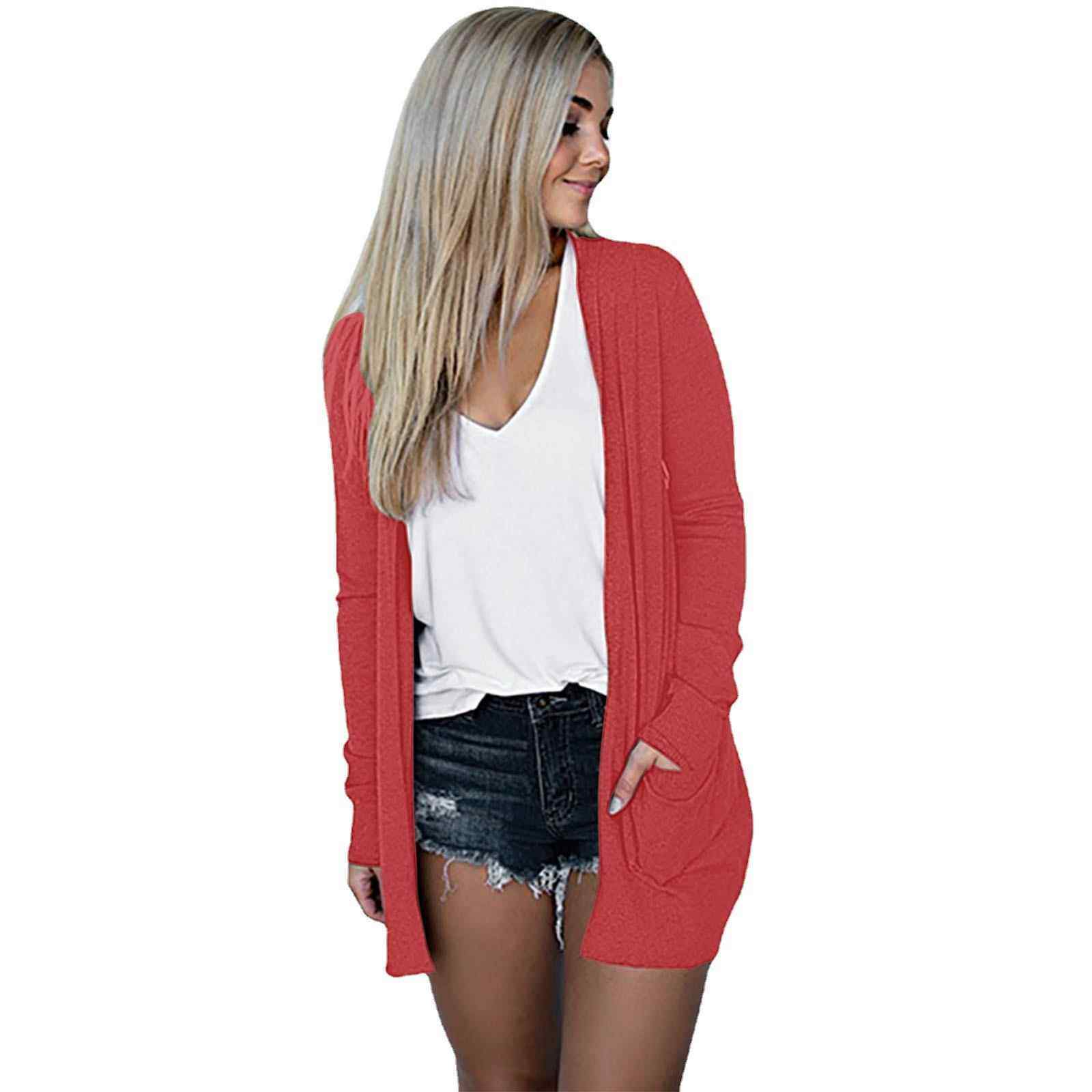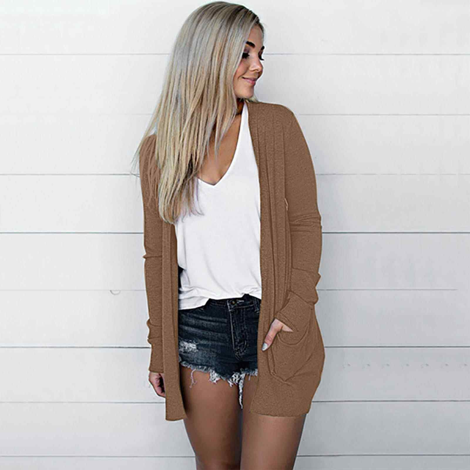 Solid Eight Jacket Cardigan Colors Pocket Casual Large