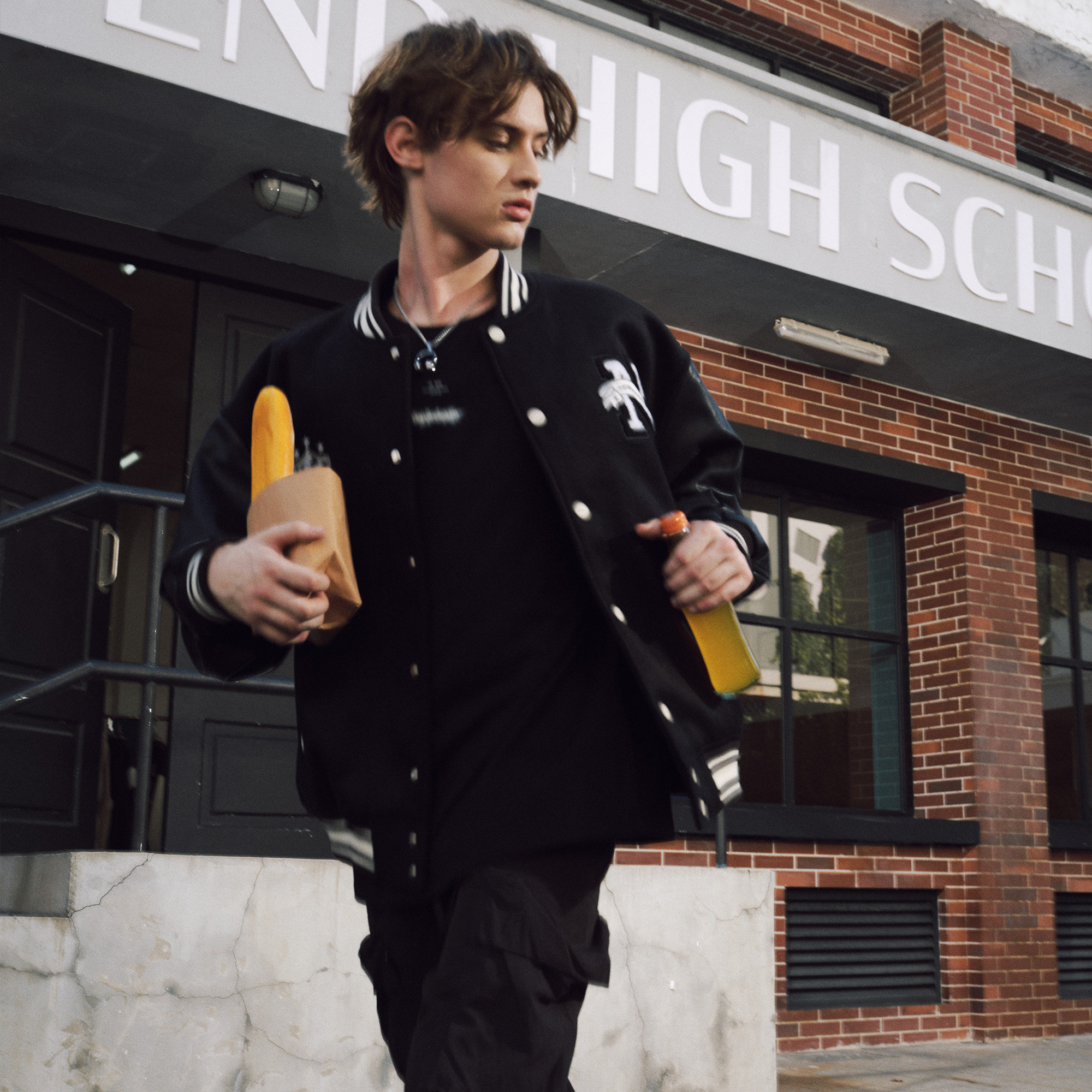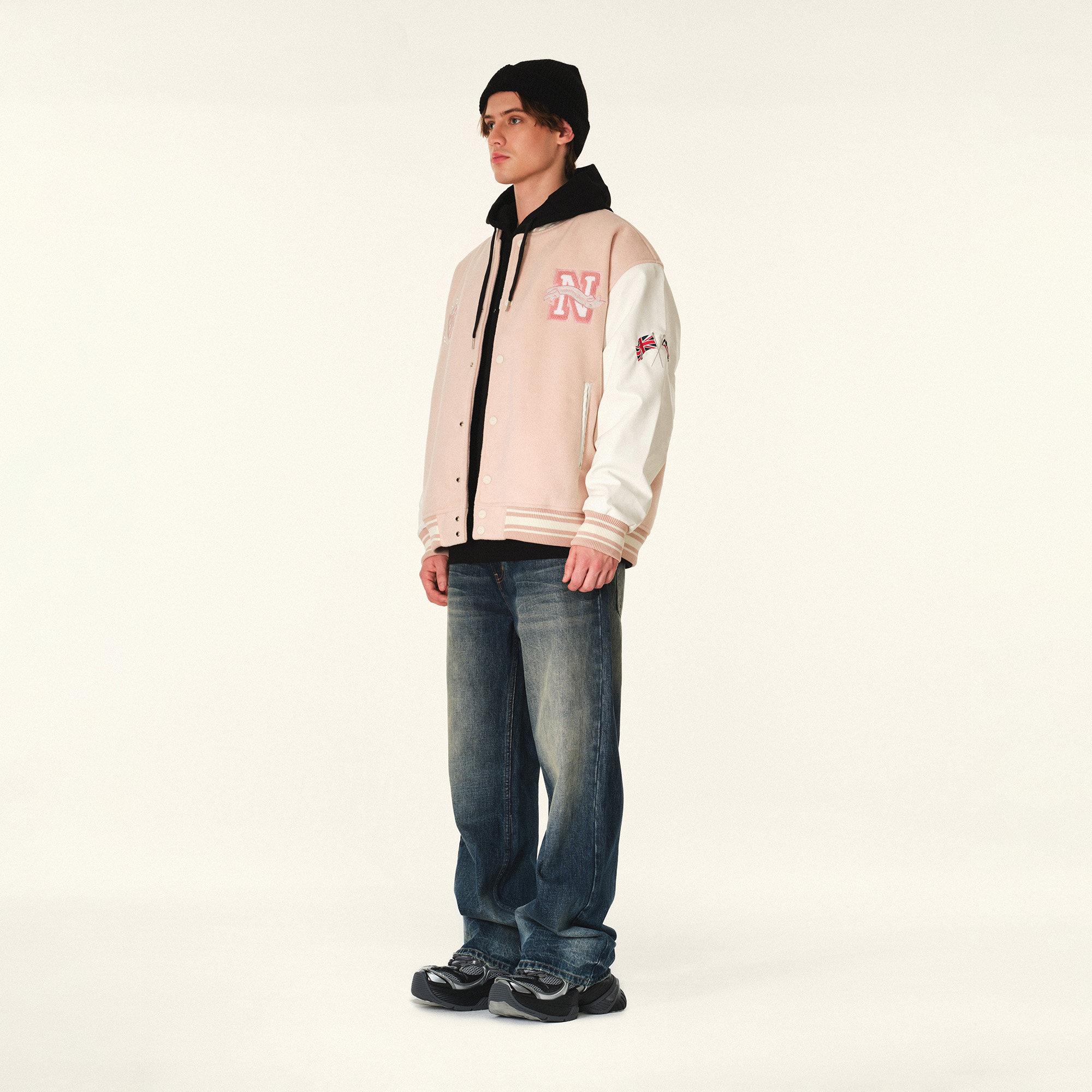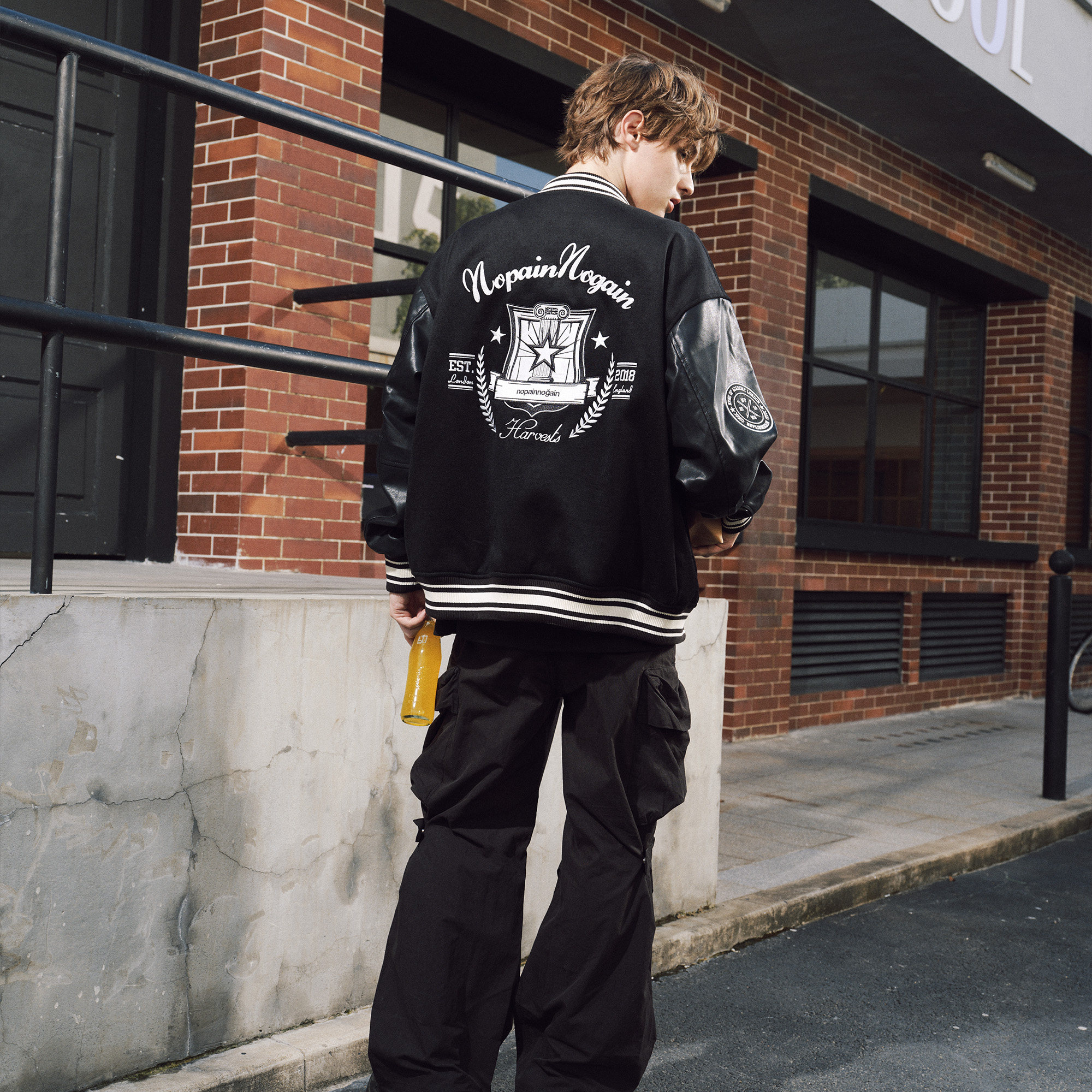 NPNG复古刺绣棒球夹克男秋冬仿皮革拼接廓形插肩袖 情侣休闲外套