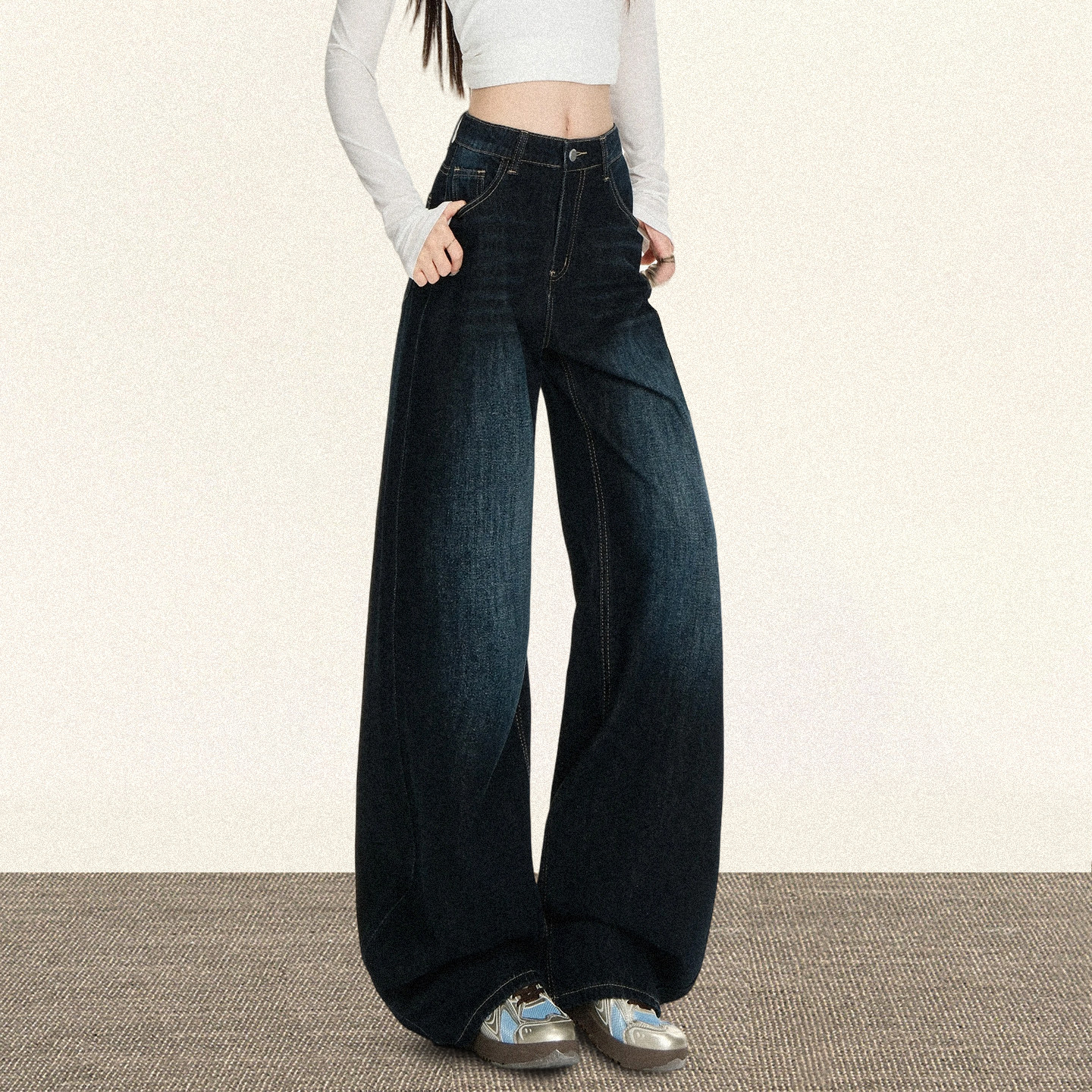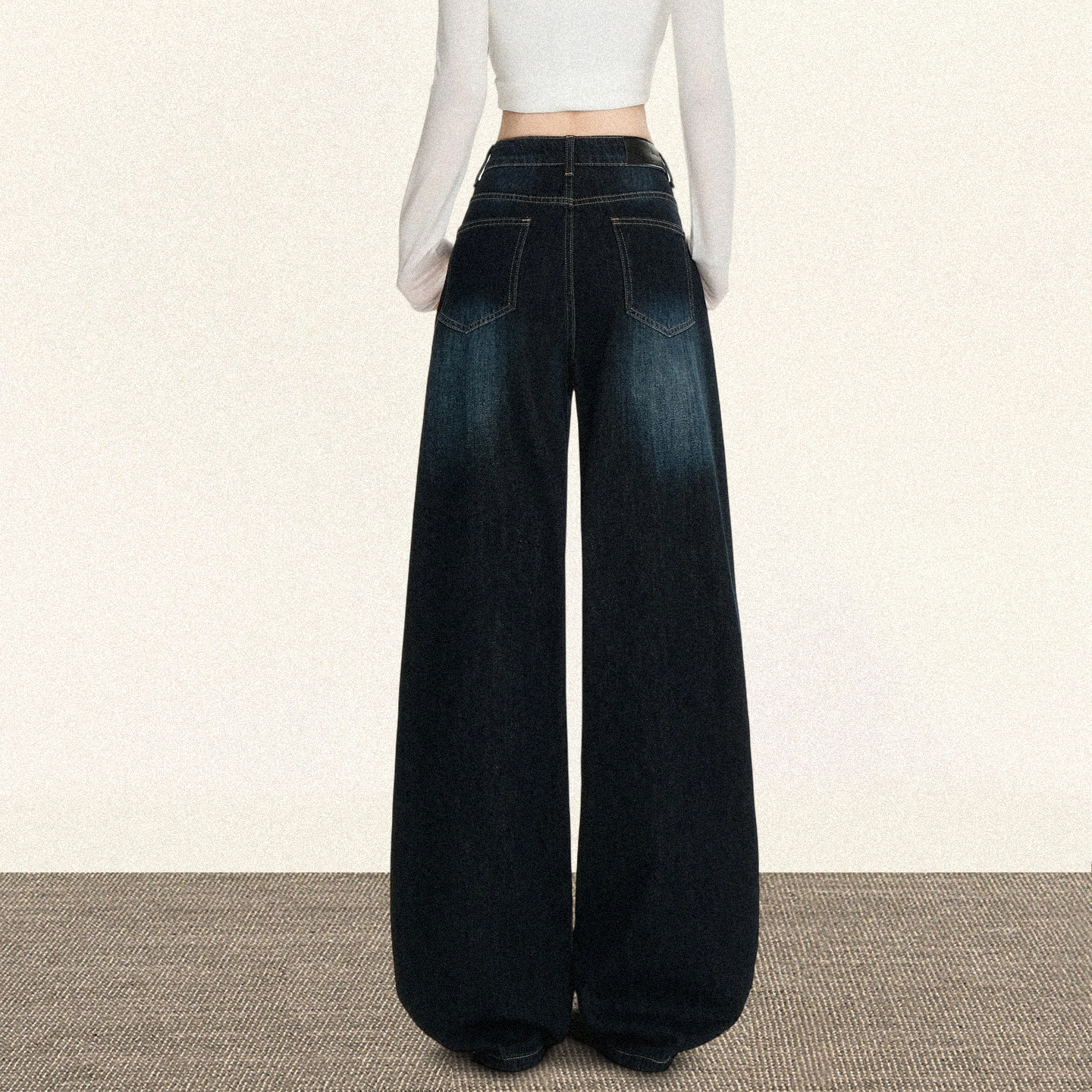 显瘦休闲拖地裤 李李服饰加绒气质白色高腰阔腿牛仔裤 女2025年冬季
