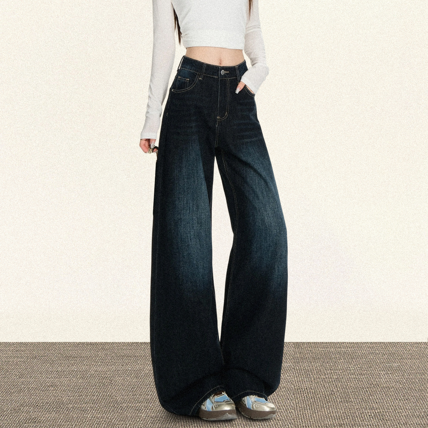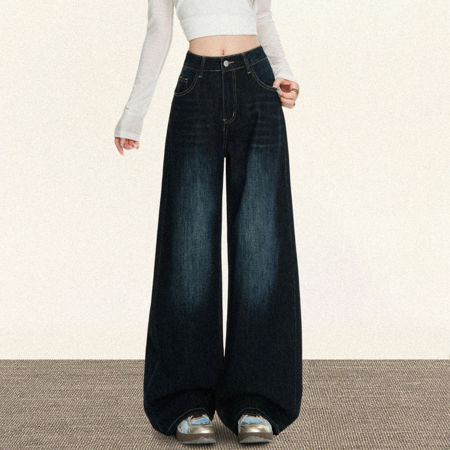 双扣高腰显瘦百搭长裤 李李服饰韩漫掐腰加绒微喇牛仔裤 女2025冬季