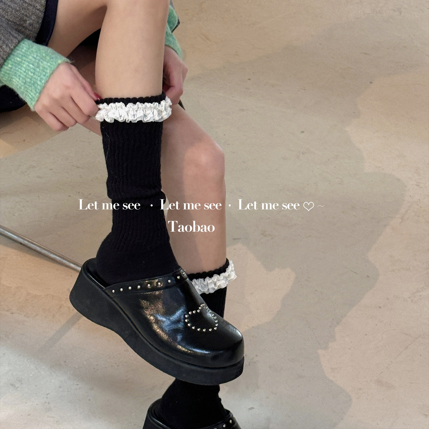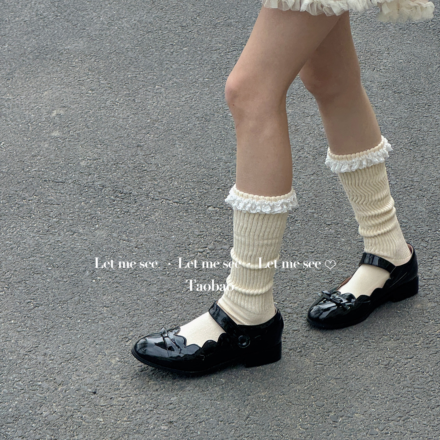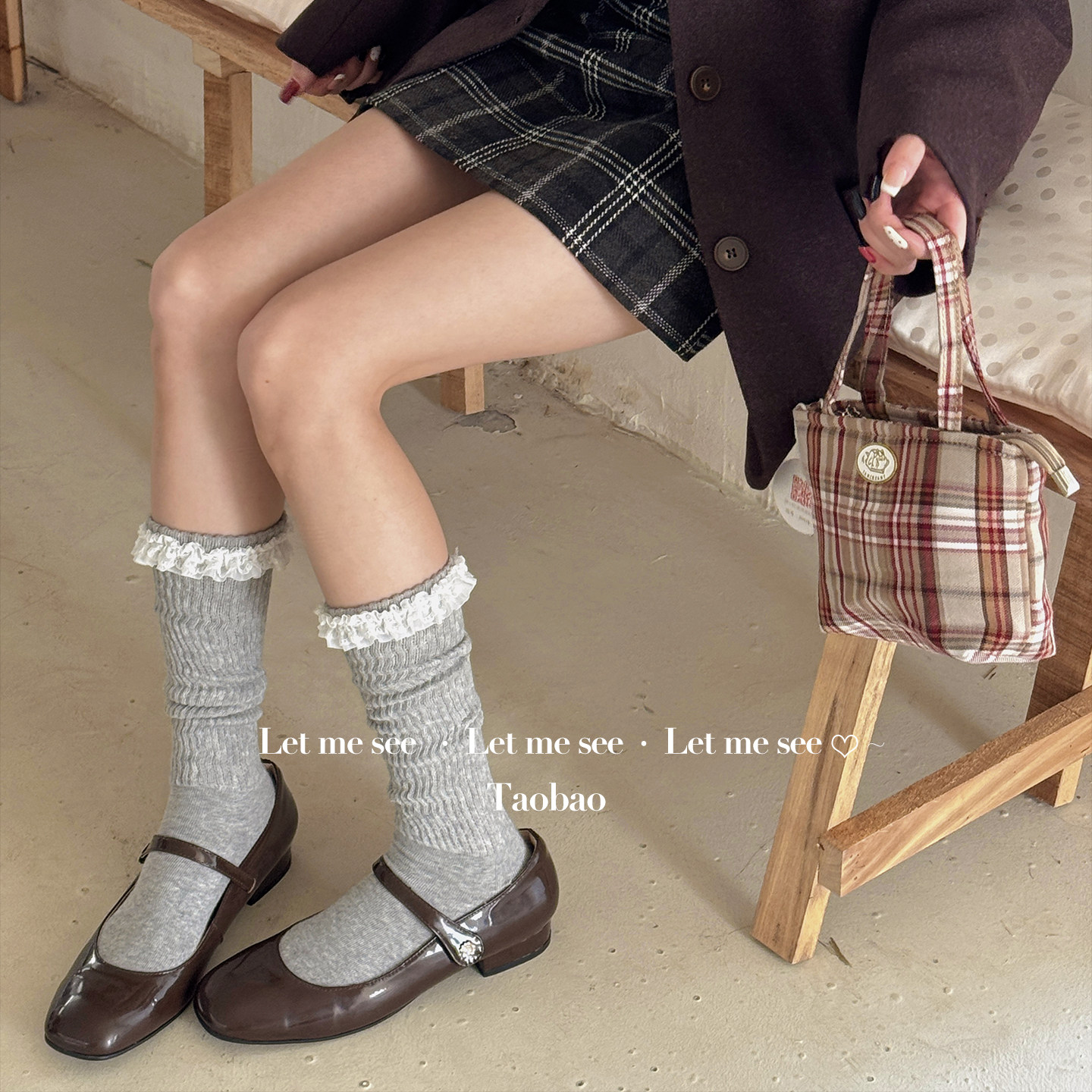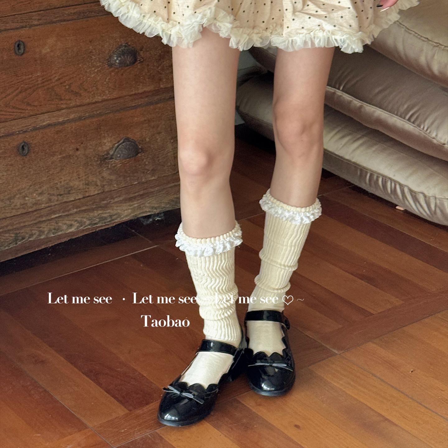 日系复古镂空羊毛小腿袜子女中筒堆堆袜秋冬保暖配靴子长筒袜靴袜