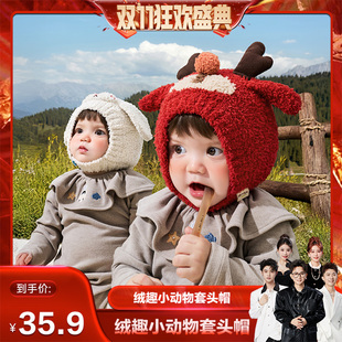 可爱企鹅耳朵会动儿童帽子女孩秋冬保暖毛绒一体帽男女宝宝防寒帽