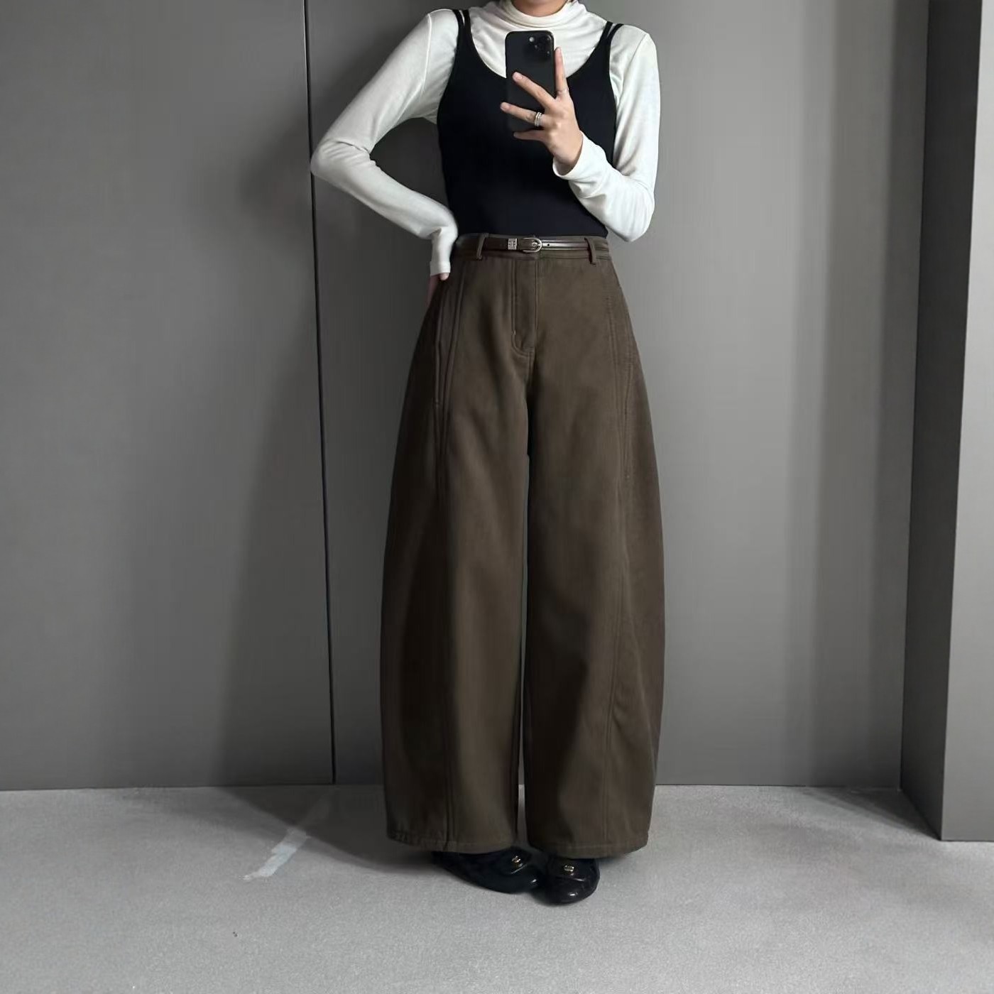 1韩版 加绒休闲裤 时尚 女冬季 宽松休闲高腰显瘦阔腿裤 TOP约澜83113