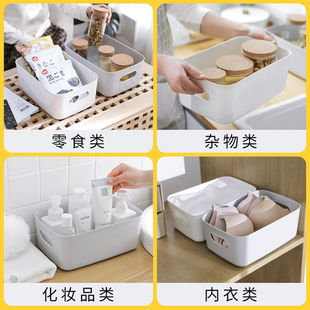禧天龙桌面收纳盒长方形塑料杂物储物盒零食整理防尘收纳筐厨房