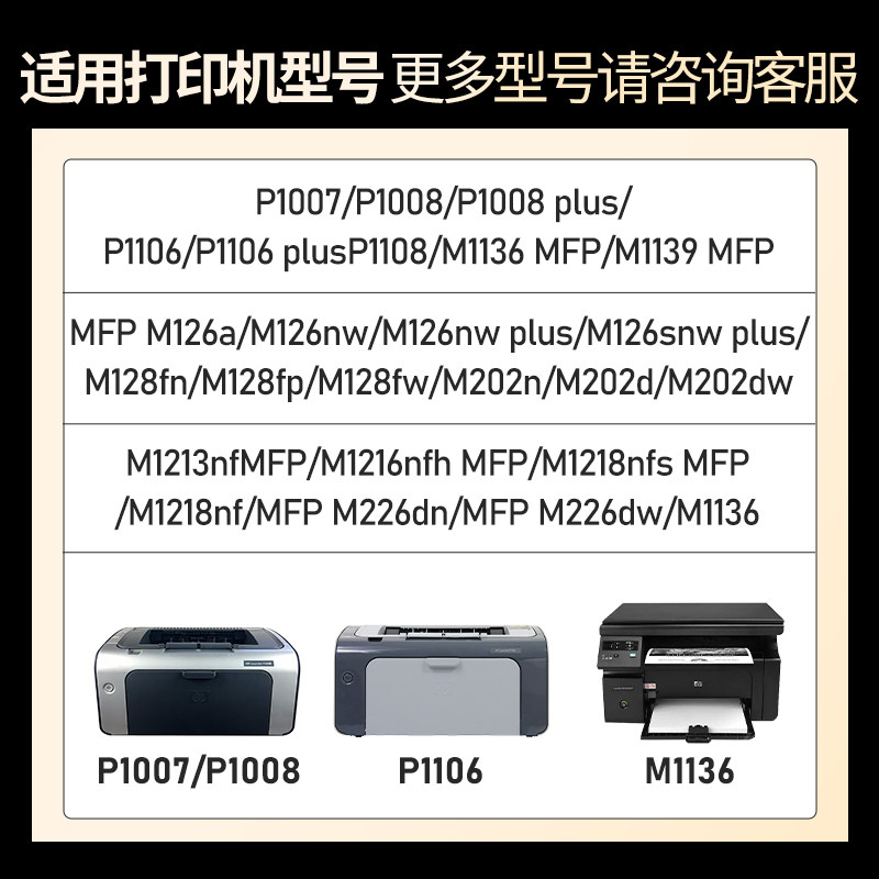 88a易加粉适用HP惠普M1136打印机m126a硒鼓m1213nf m126nw粉盒p1007p1106p1108p1008墨盒cc388a碳粉盒 m128fn