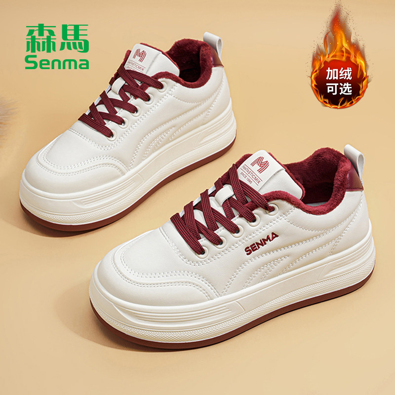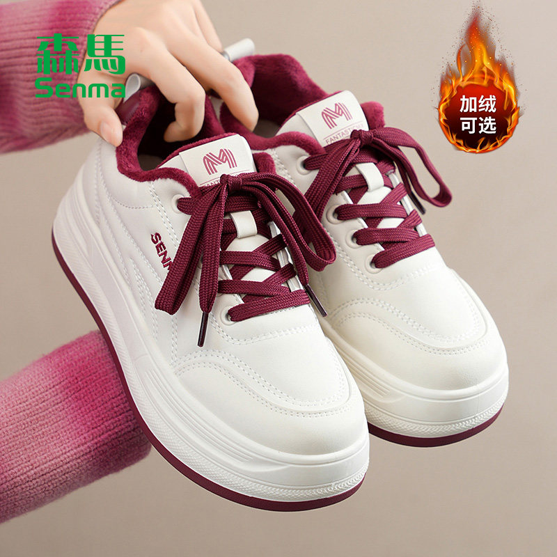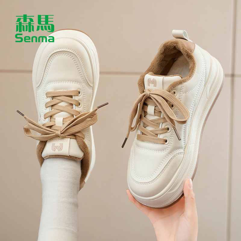 新款 2025秋冬季 厚底小白鞋 女爆款 子女 森马加绒板鞋 休闲二棉鞋 女款