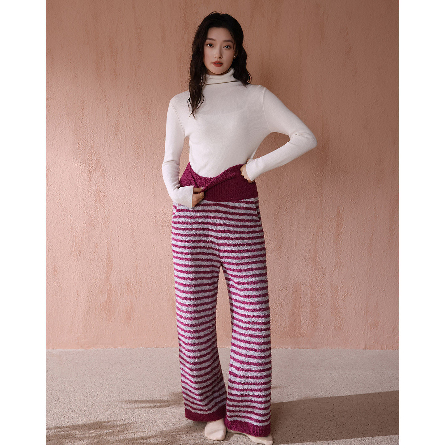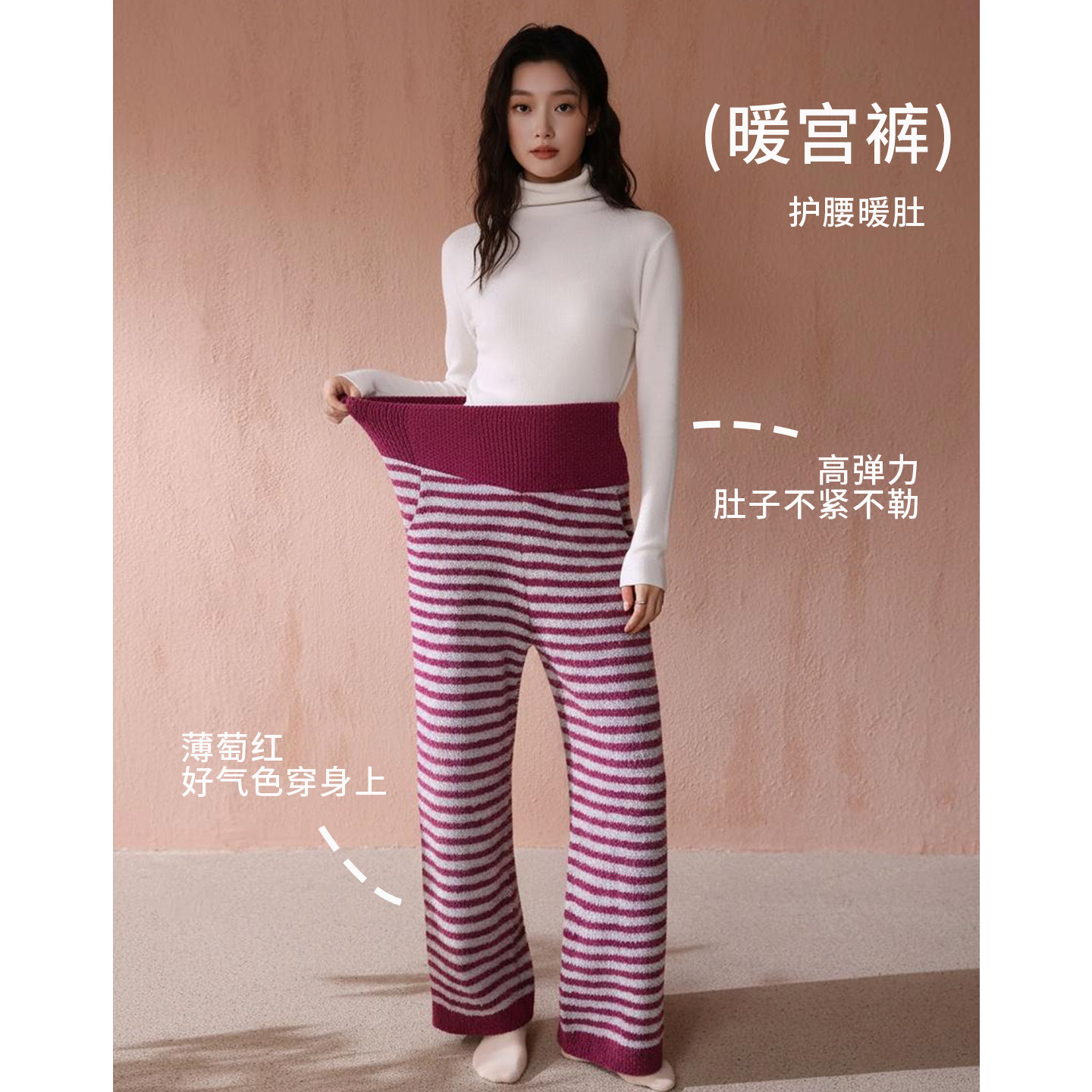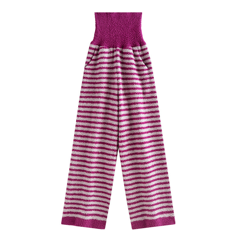 女休闲宽松遛弯家居长裤 馨帮帮Homedress 珊瑚绒条纹睡裤 新款 冬季
