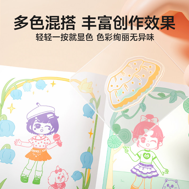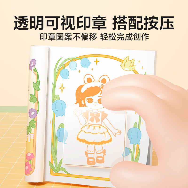 印章 DIY少女换装 可爱卡通动漫透明手账本服装 穿搭透明可视印章画 设计师28种印章随心搭配 图册印泥小小换装 时光学
