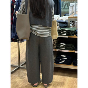 胖mm宽松显瘦休闲梧桐卫裤 灰色九分阔腿奶皮裤 女装 大码 女秋冬新款