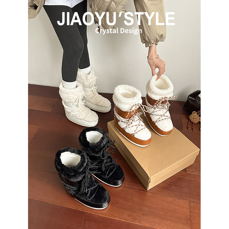 厚底棉鞋 热风加绒雪地靴女鞋 保暖短筒靴子户外时尚 新款 2025年冬季