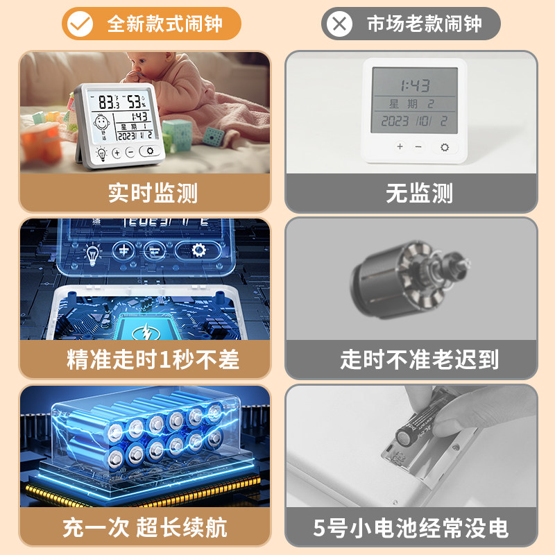 电子数显温湿度计室内家用婴儿时钟壁挂式 迷你温度精准闹钟温度表