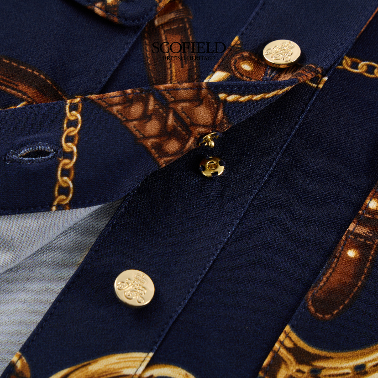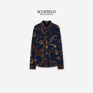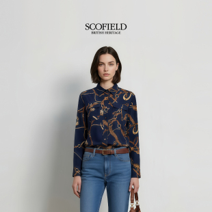 新品 金属纽扣2026春季 英伦风气质锁链印花翻领衬衫 Scofield女装