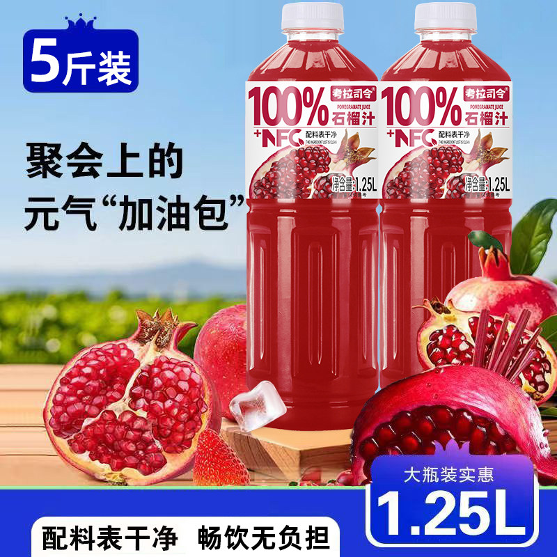 100%石榴汁1.25L 加NFC果汁饮料解腻好喝年货送礼0色素批 2大瓶装