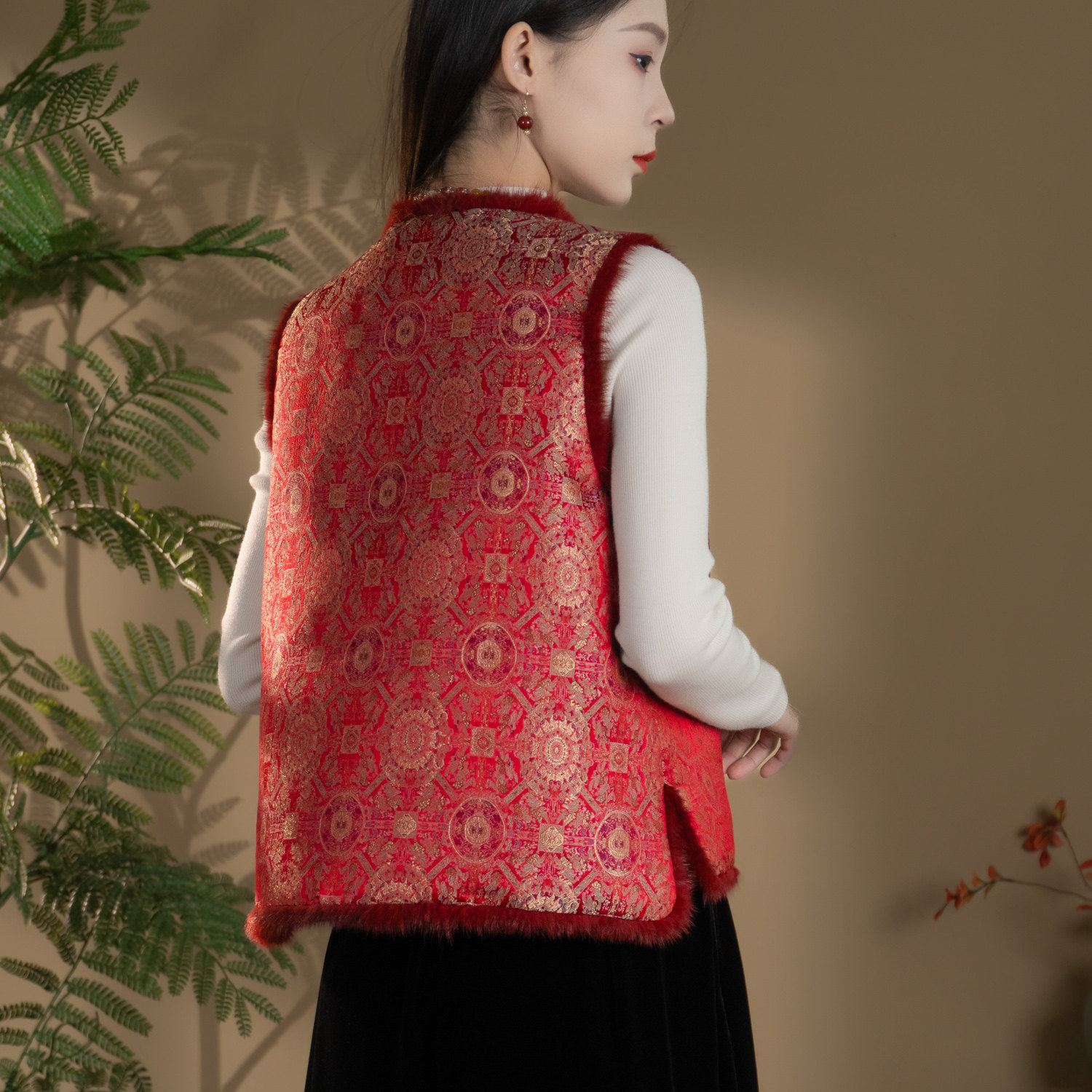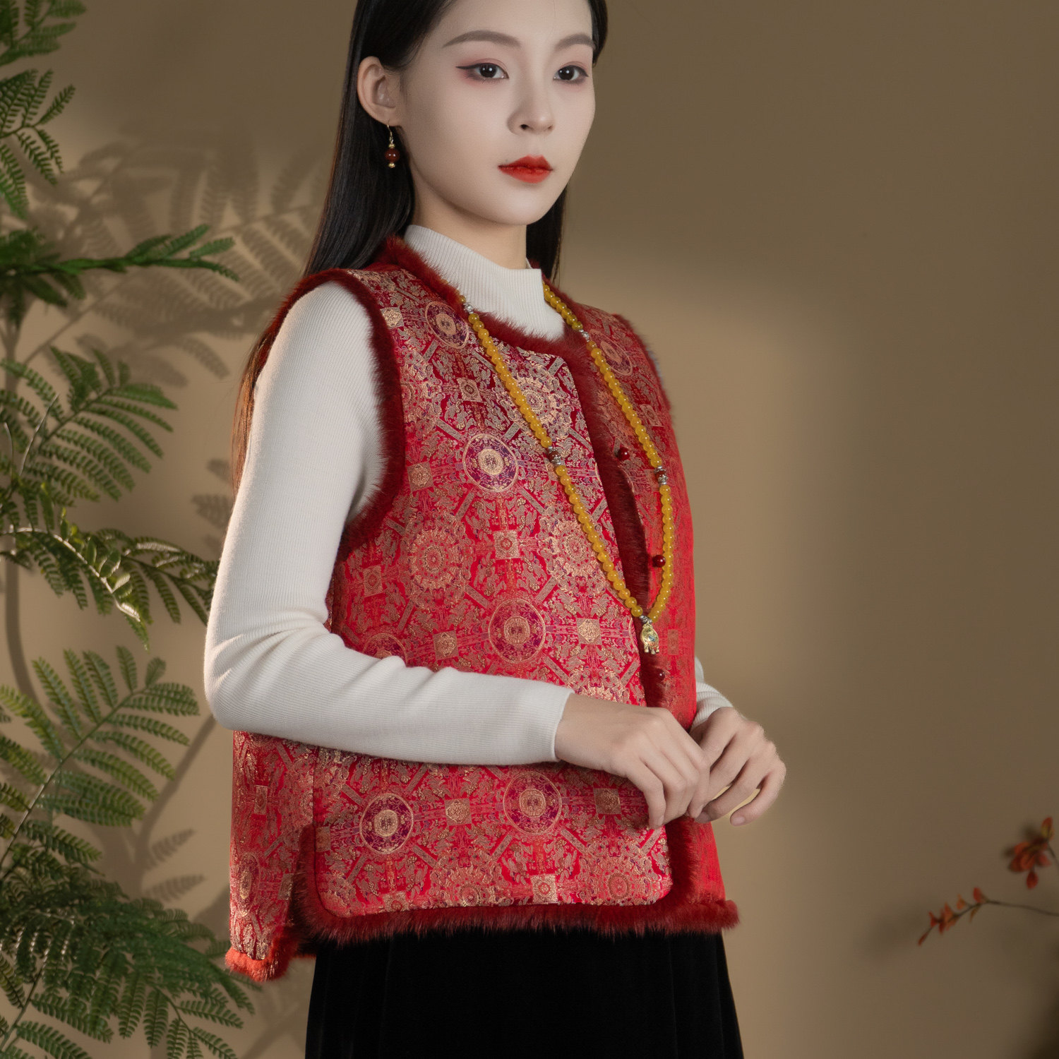 蝉昭 女里外全棉纯棉内充新疆长绒棉护心保暖排湿寒马甲坎肩宽松