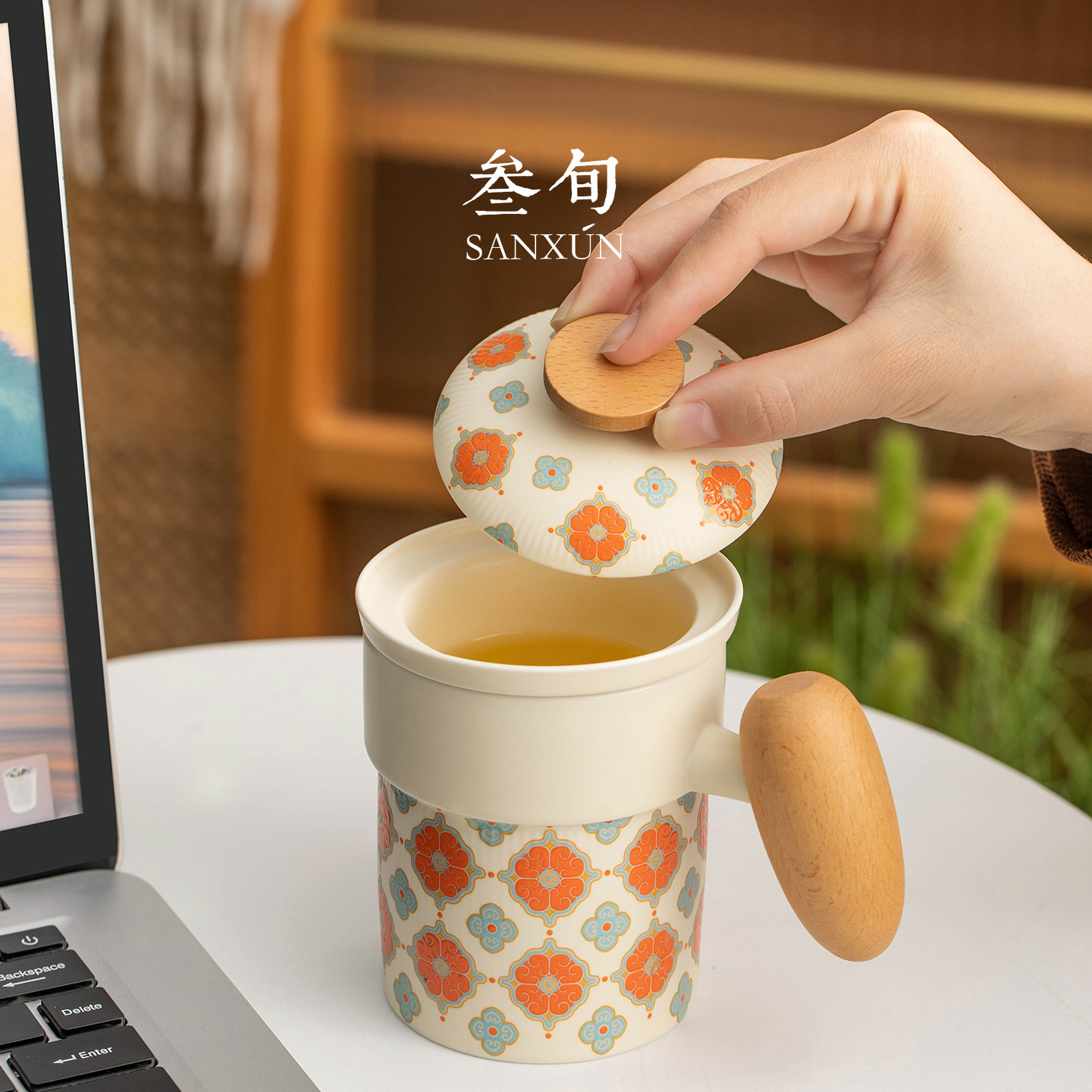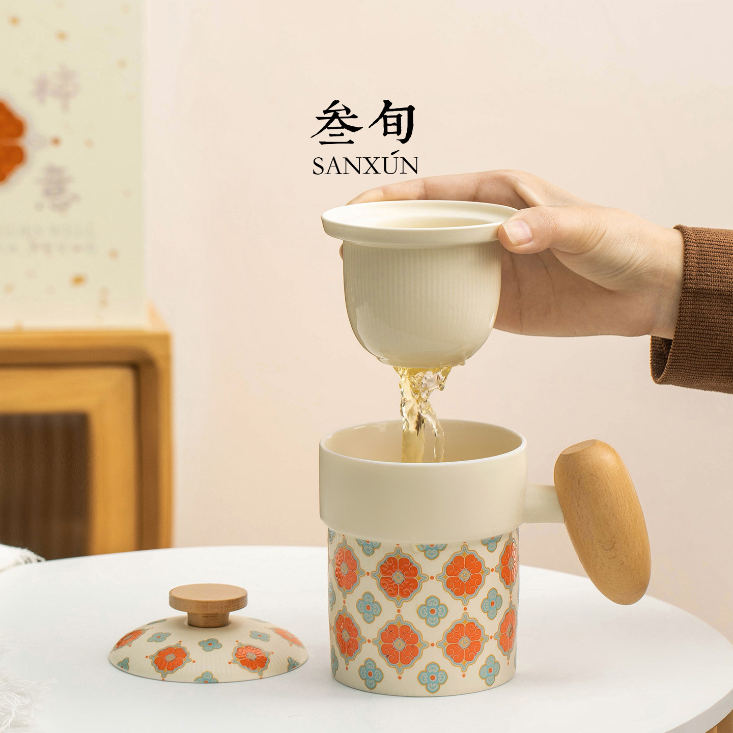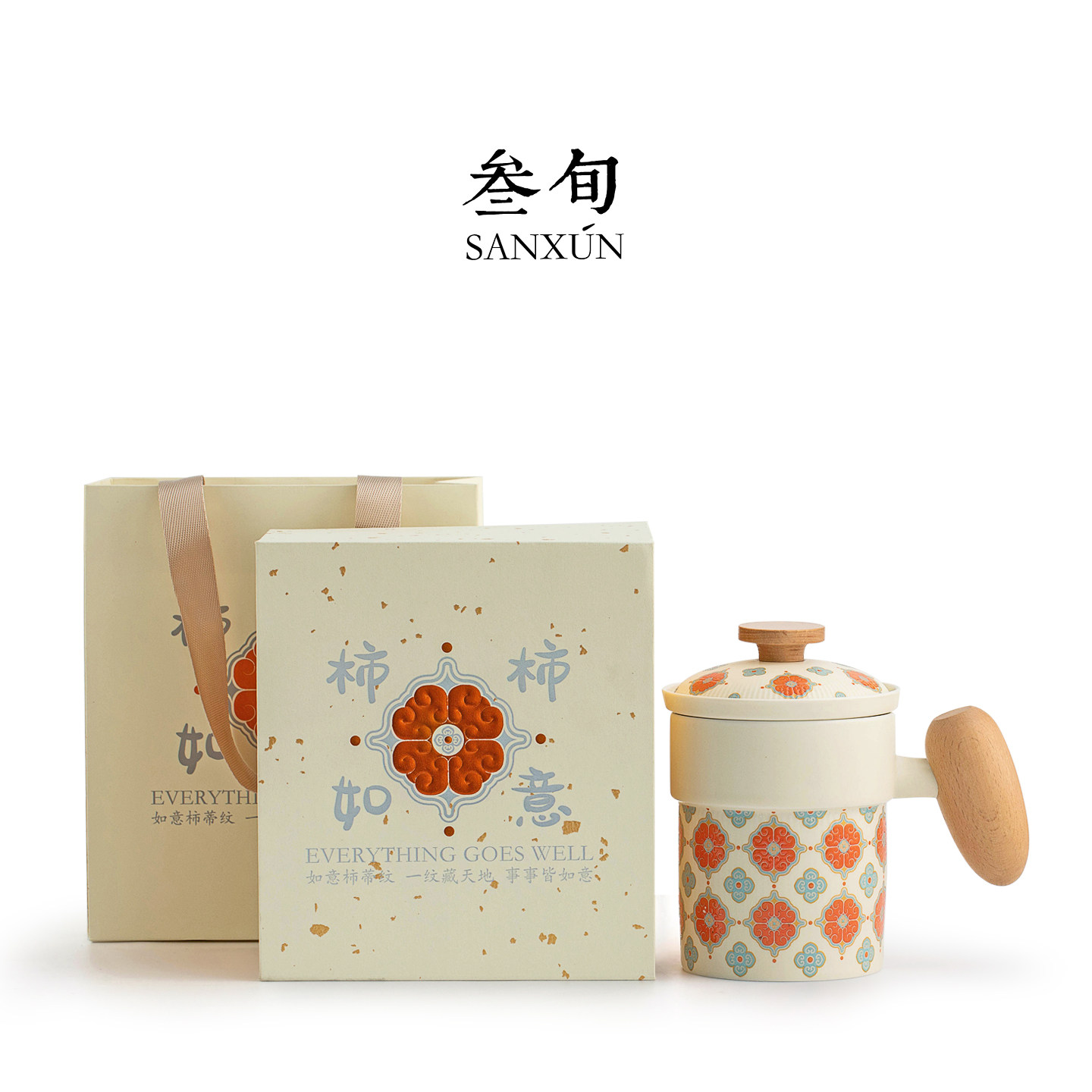 叁旬柿柿如意晴屿陶瓷马克杯带盖茶水分离泡茶杯高颜值定制伴手礼