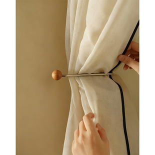 窗帘挂钩免钉挂球门帘绑带收纳扣固定器收拢粘贴墙钩胡桃木球轻奢