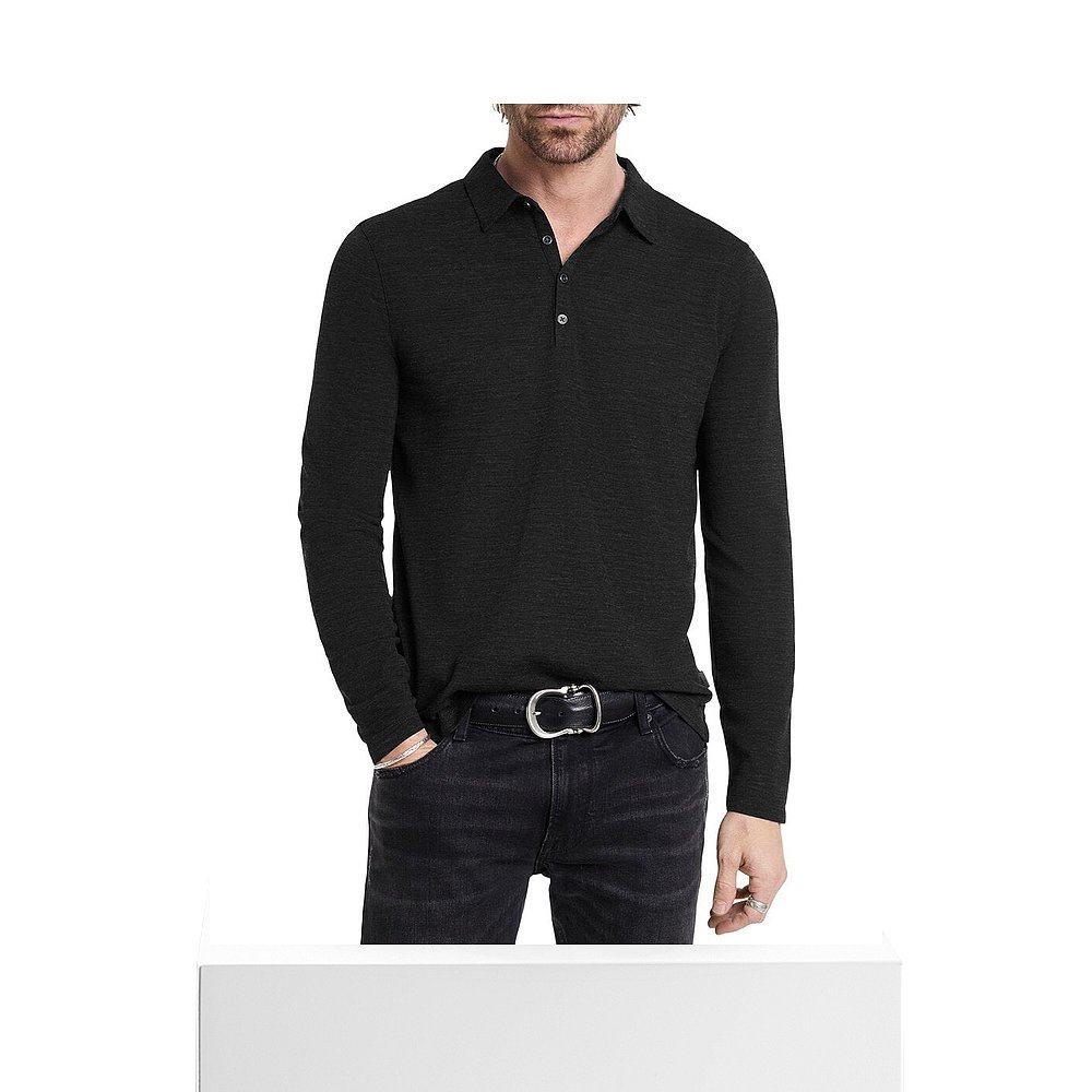 春季 班尼路长袖 翻领t恤男款 男士 黑色华夫格肌理感简约上衣A polo衫