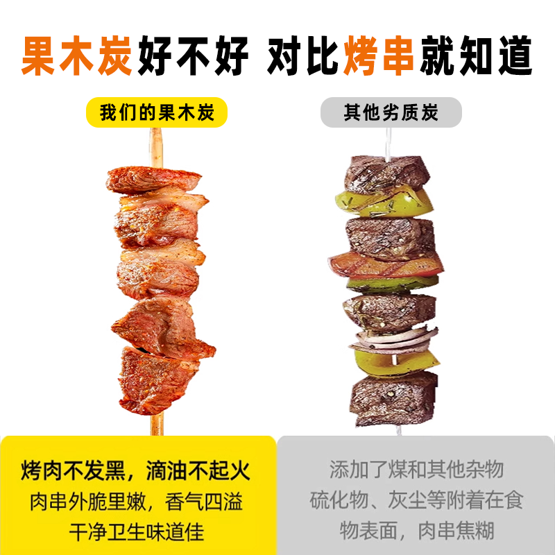 木炭烧烤专用果木碳易燃家用无烟户外烤炉速燃竹炭围炉煮茶原木炭