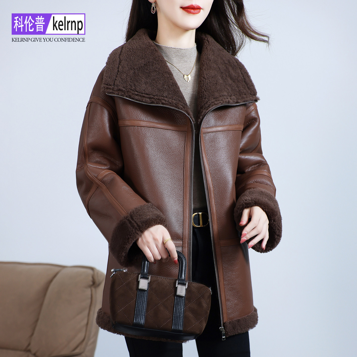 羊皮毛一体外套女2026冬新中长款 高端羔羊毛羊剪绒真皮衣皮草大衣