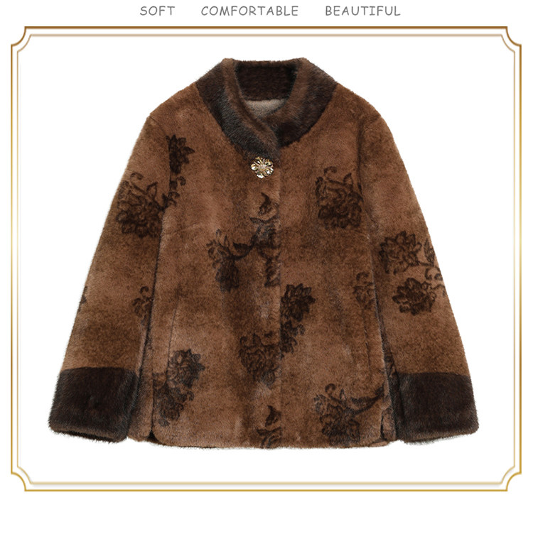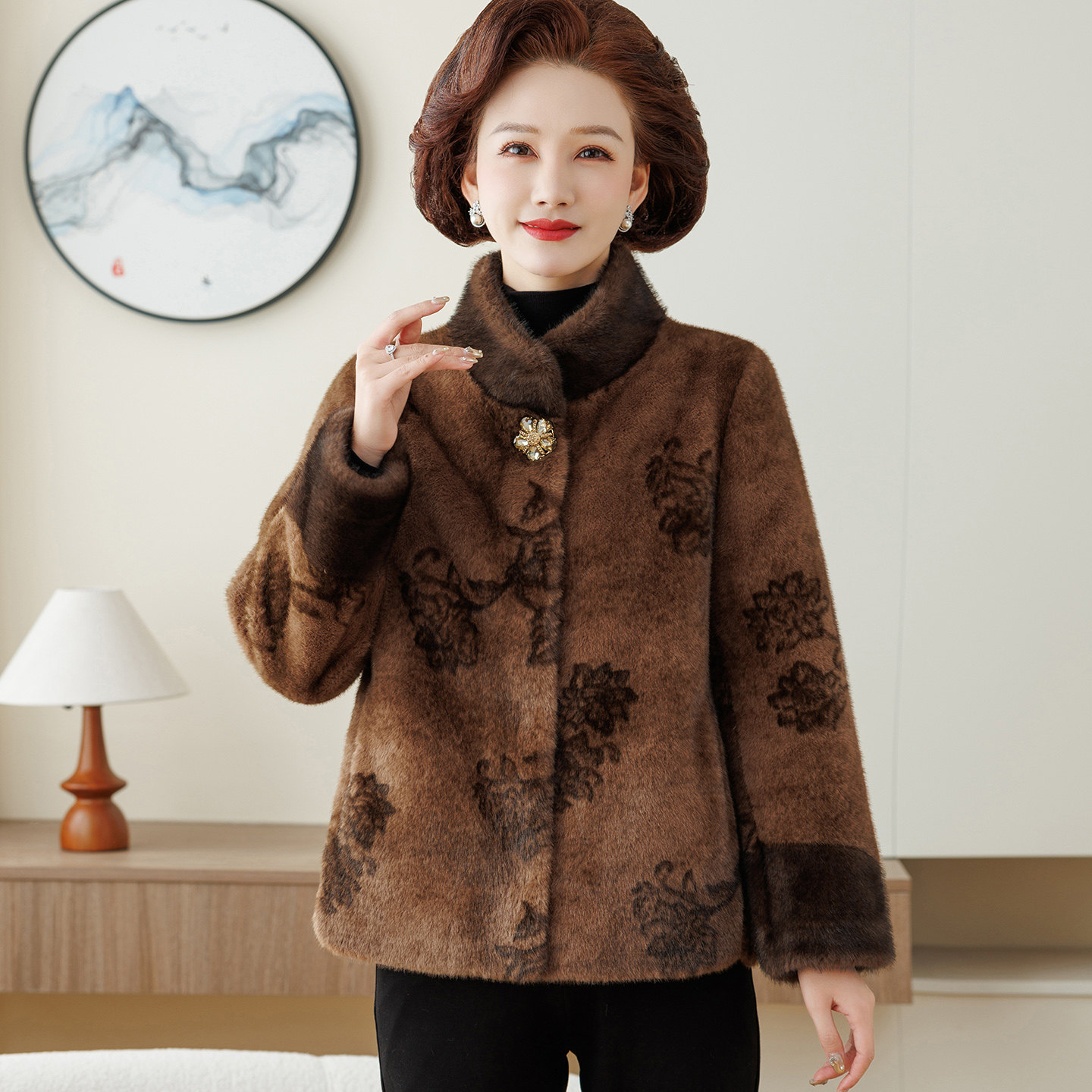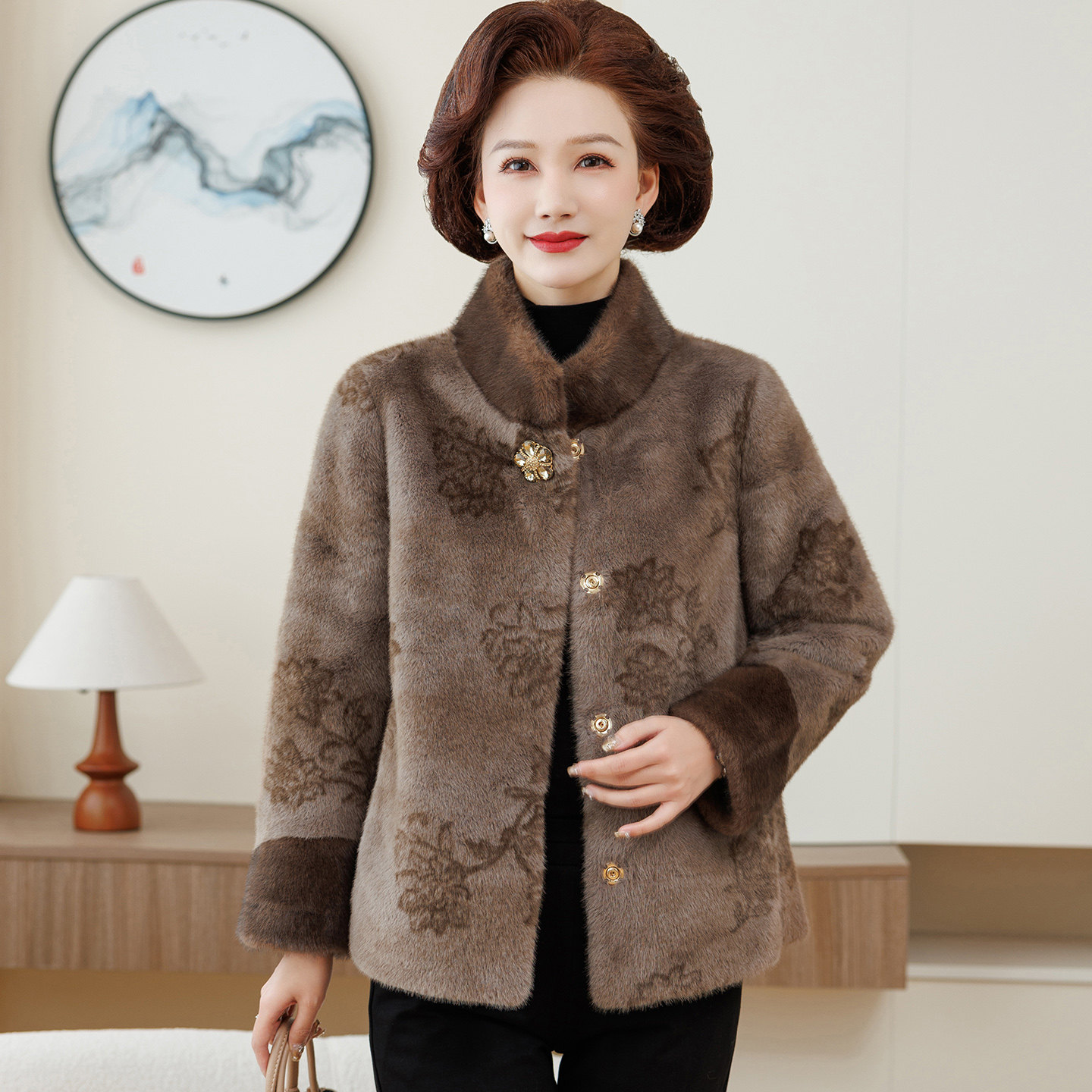 皮草 水貂绒外套奶奶冬季 妈妈冬装 皮毛一体大衣中老年人女高贵新款