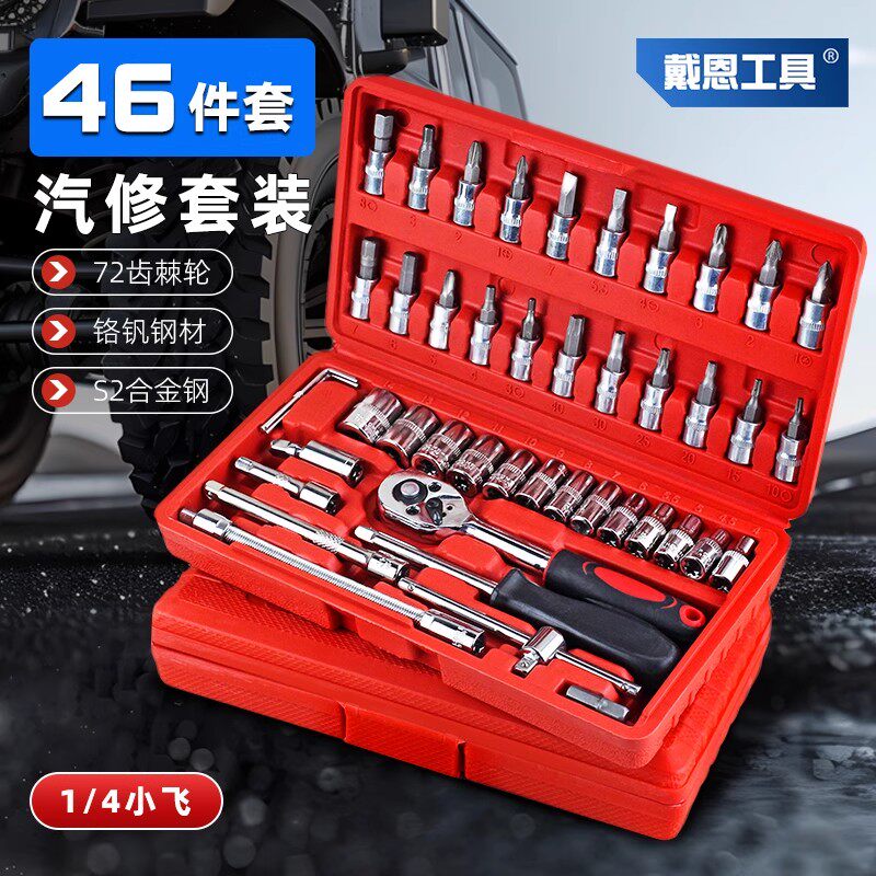 多功能汽修工具棘轮快速套筒扳手汽车轮胎维修车载随车组合套装